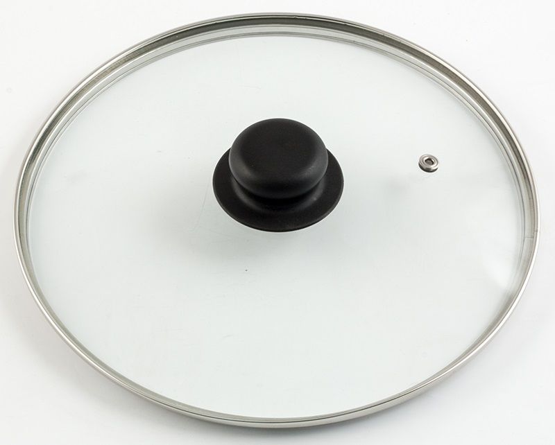К4718 крышка 18см с ручкой стеклян. метал/обод низ.. Стеклянные крышки с металлическим ободком и паровыпуском. При производстве крышек используется листовое термостойкое стекло толщиной 4 мм. Специальная термическая обработка стекла делает его ударопрочным и более устойчивым к изменениям температур, а метод штамповки обеспечивает большую легкость и прозрачность штампованных крышек по сравнению с литыми. Обод и заклепка паровыпуска выполнены из высококачественной нержавеющей стали. Они предотвращают сколы на стекле при эксплуатации. Ручка изготовлена из термостойкого пластика. Использование стеклянных крышек позволяет контролировать процесс приготовления пищи без потери тепла. А широкий ассортимент размеров позволяет подобрать крышку практически к любой сковороде или кастрюле. Стеклянные крышки можно мыть в посудомоечной машине. Диаметр, см: 18