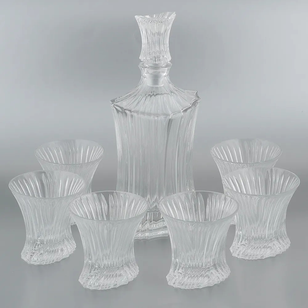 Crystal bohemia набор для напитков. Набор для виски Crystal Bohemia состоит из штофа и шести стаканов. Изделия выполнены из граненого высококачественного хрусталя. Они излучают приятный блеск и издают мелодичный звон. Набор предназначен для виски. Набор для виски Crystal Bohemia прекрасно оформит интерьер кабинета или гостиной и станет отличным дополнением бара. Такой набор также станет хорошим подарком к любому случаю. Объем штофа: 750 мл. Высота штофа (без крышки) : 24 см. Объем стакана: 250 мл. Диаметр стакана по верхнему краю: 9,8 см. Высота стенок стакана: 9,5 см.  развернуть описание ▼