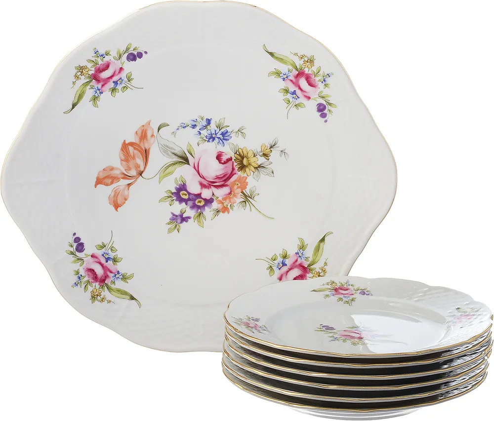 Thun тортница, 7 шт. Изделие из Чешского фарфора Чешский фарфор воплощает в себе благородство и изящество Чешский фарфор всегда выделялся своими отменными качествами, такими как: легкость, прозрачность, белизна, тонкость, данные изделия могут издавать ни с чем несравнимый благородный мелодичный звук, вызывающий восхищение.  развернуть описание ▼