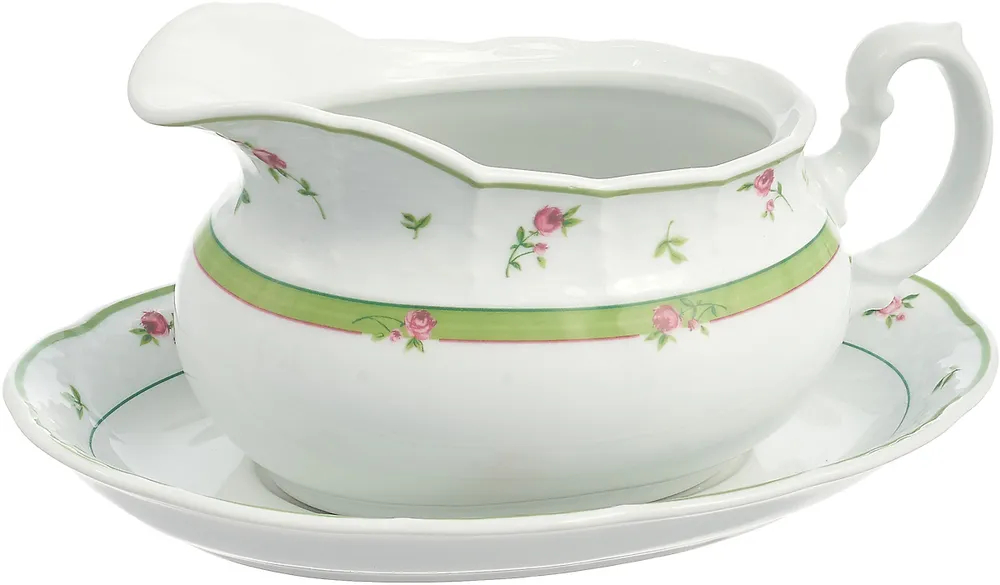 Thun соусник роза, зеленая отводка (thun 1794 a.s.), 1 шт. Изделие из Чешского фарфора Чешский фарфор воплощает в себе благородство и изящество Чешский фарфор всегда выделялся своими отменными качествами, такими как: легкость, прозрачность, белизна, тонкость, данные изделия могут издавать ни с чем несравнимый благородный мелодичный звук, вызывающий восхищение. Почему хороший фарфор никогда не покрывают росписью целиком? Декорация не является необходимой составляющей фарфорового предмета, а только подчеркивает его форму и цвет. Кроме того, за счет непокрытой декором части всегда можно определить, насколько качественен фарфор – при легком наклоне на свету видны тонкость и чистота фарфоровой массы, а также наличие примесей и потеки глазури в случае некачественного фарфора. Можно ли мыть фарфоровую посуду в посудомоечной машине? Фарфор, на который нанесена декорация, не содержащая драгоценные металлы (золото, платина) , можно мыть в посудомоечной машине без перегруза и при использовании щадящего режима с температурой до 45?С, внимательно ознакомившись с инструкцией производителя машины. Изделия, декорированные драгоценными металлами, мыть в посудомоечной машине категорически запрещается. Можно ли ставить фарфоровую посуду в микроволновую печь? Обычный и жаропрочный фарфор, на который нанесена декорация, не содержащая драгоценные металлы (золото, платина) , можно использовать в микроволновой печи. Изделия, декорированные драгоценными металлами, ставить в СВЧ-печь категорически запрещается.  развернуть описание ▼