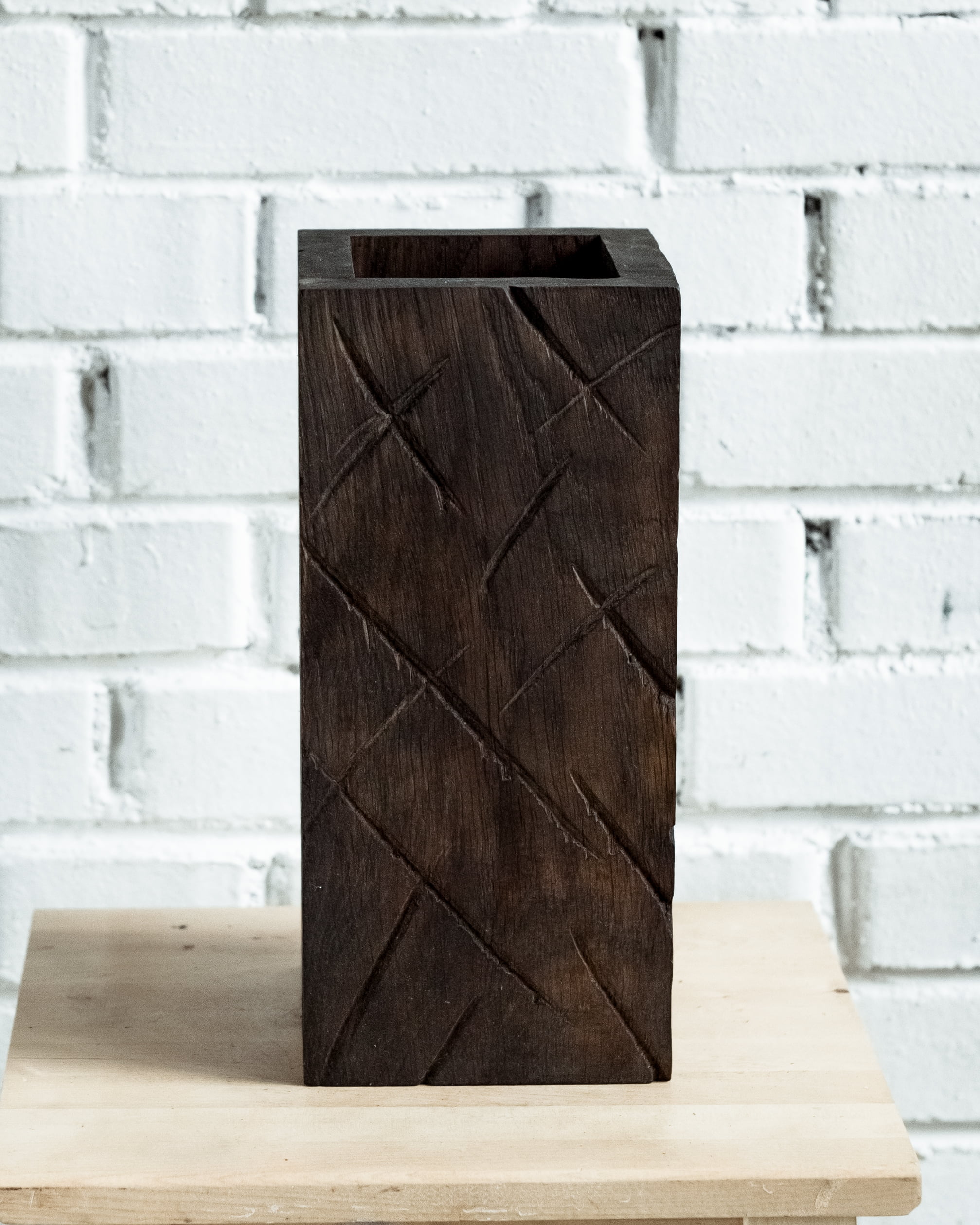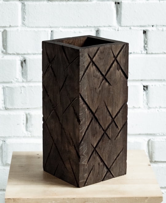 Ваза декоративная fuga пирог средняя цвет: темный, товары для загородного . Материал Мореный дуб Размеры, мм 150 х 150 х 350 Покрытие Льняное масло