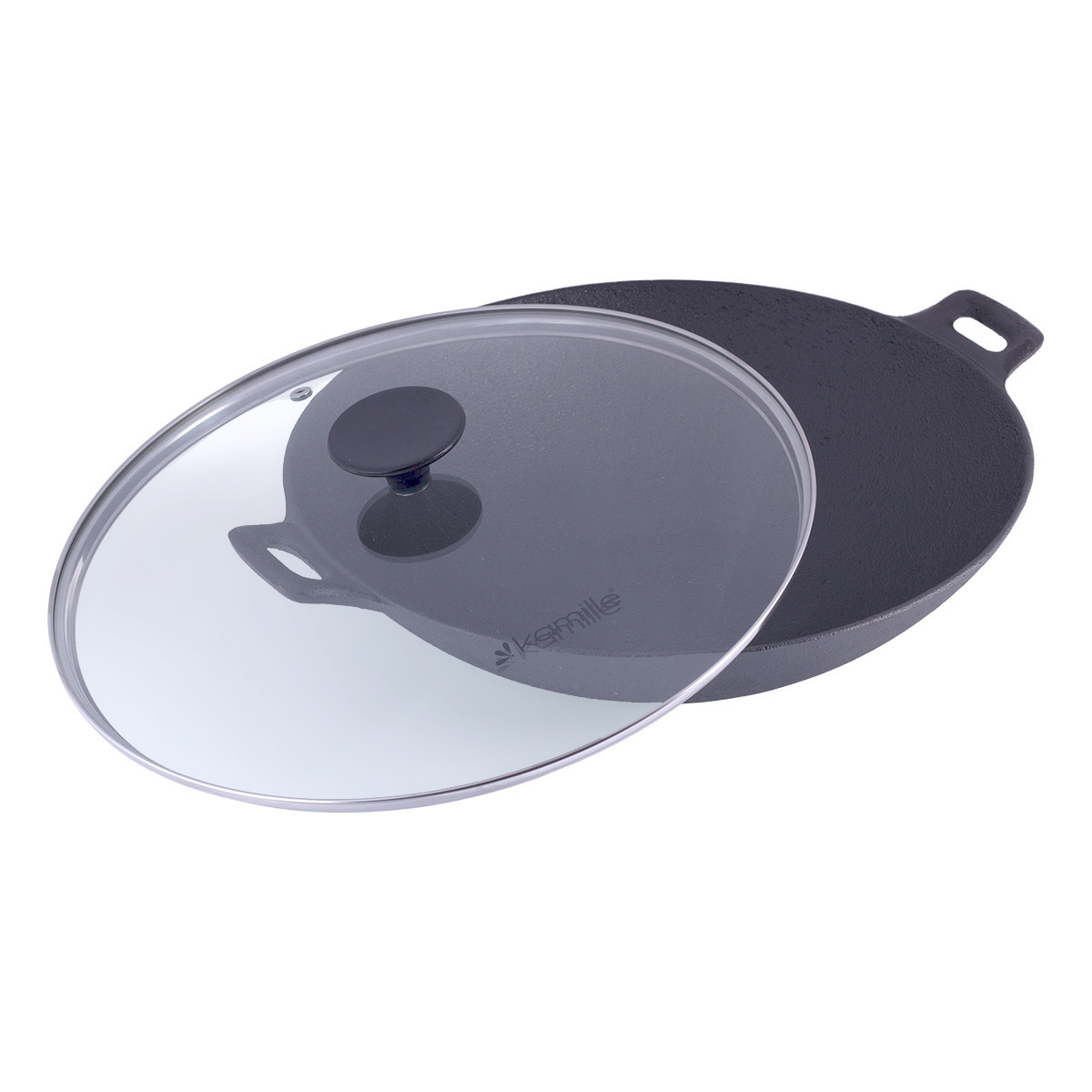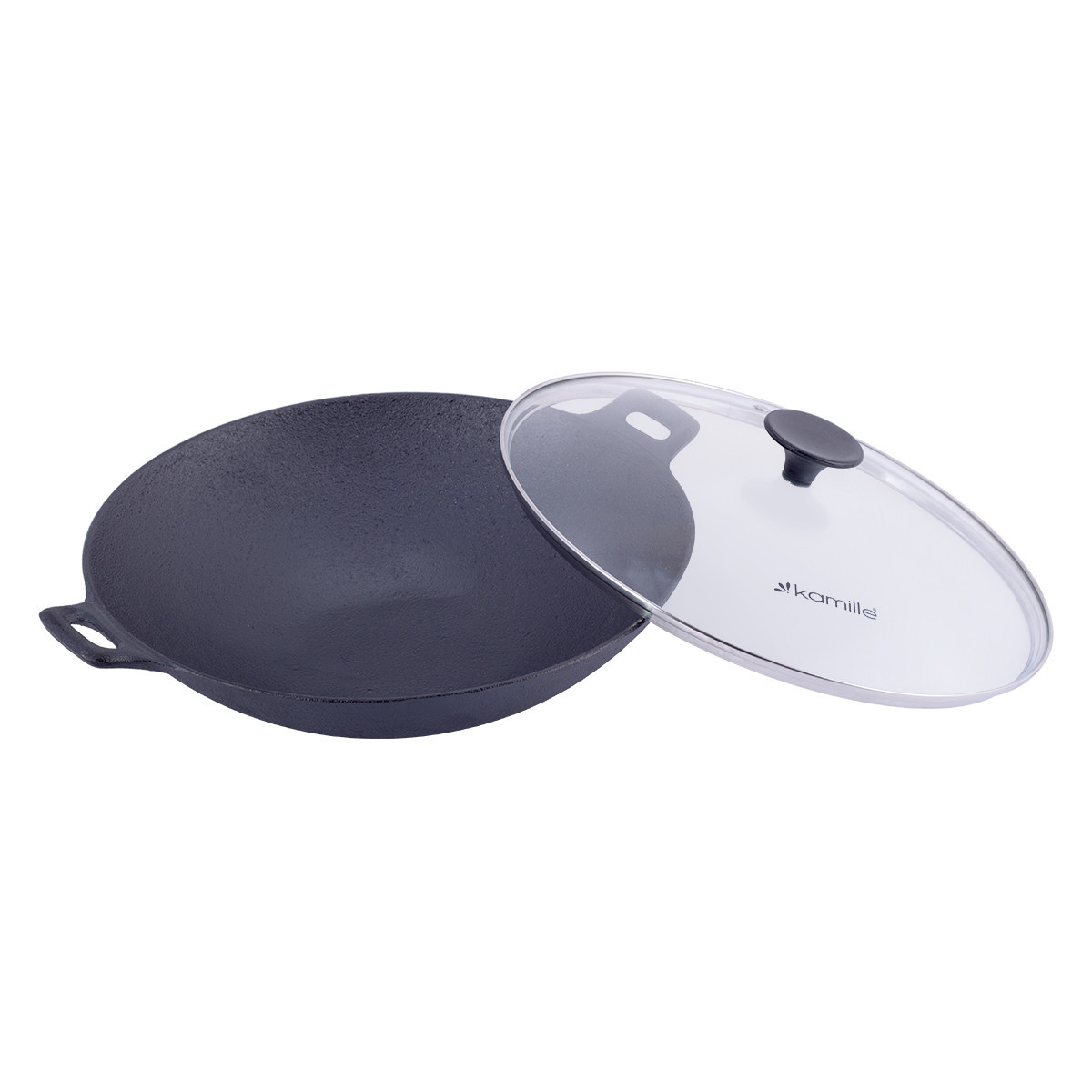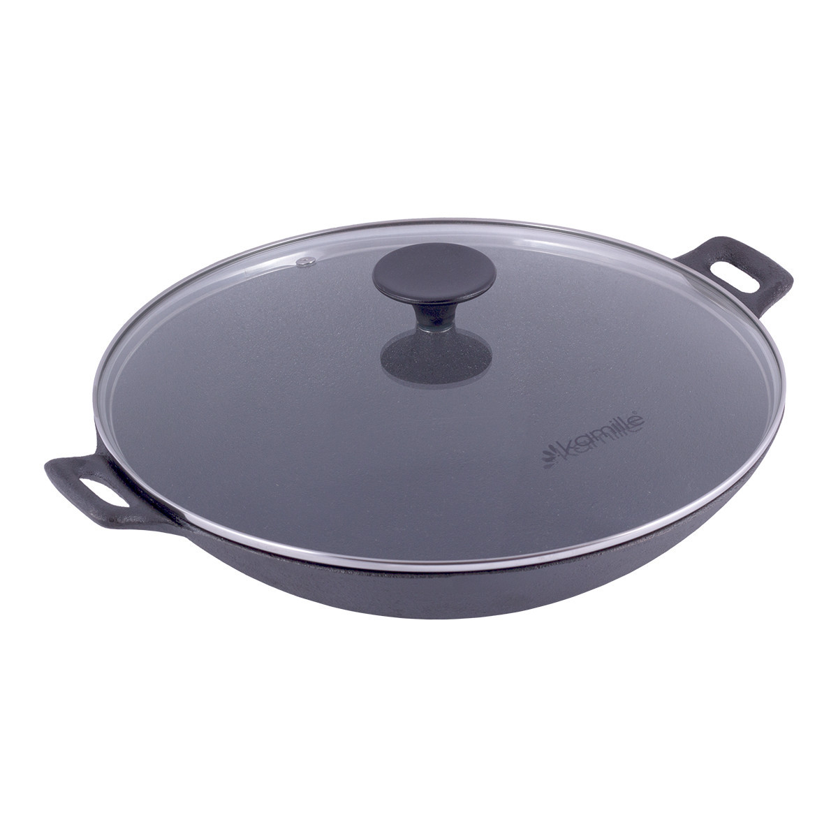 Cковорода чугунная wok 30см со стеклянной крышкой kamille km-4814v. Бренд: Kamille Описание: Cковорода чугунная Wok — эксклюзивное предложение нашего интернет-магазина. Благодаря прочному покрытию, такая cковорода устойчива к механическим воздействиям, за счет чего значительно увеличивается срок ее службы. Сковорода нагревается равномерно, не создавая перегретых участков и холодных краев, даже в тех случаях, когда процесс приготовления еды идет на небольшом огне. В результате сокращается время приготовления блюда и уменьшается риск есть смесь недожаренной или пережаренной пищи. Уже после первого использования сковороды Вы будете удивляться, как могли обходится без нее ранее. Форма: круглая. Верхний диаметр: 30см. Материал: чугун. Материал крышки: жаропрочное стекло. Крышка с отверстием для выхода пара: да. Подходит для мытья в посудомоечной машине: нет. Подходит для: индукционной, электрической, газовой и грилевых плит. Упаковка: картонная коробка 31,5*33*10,5см.