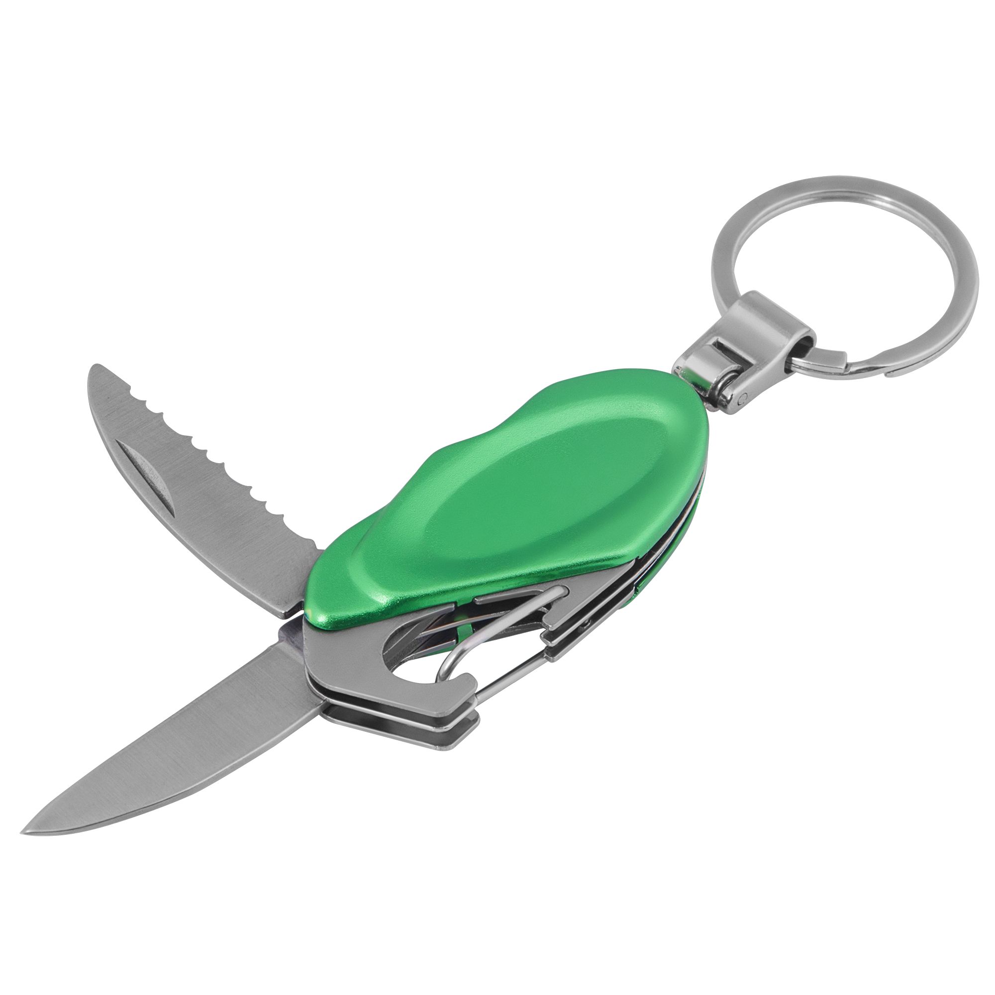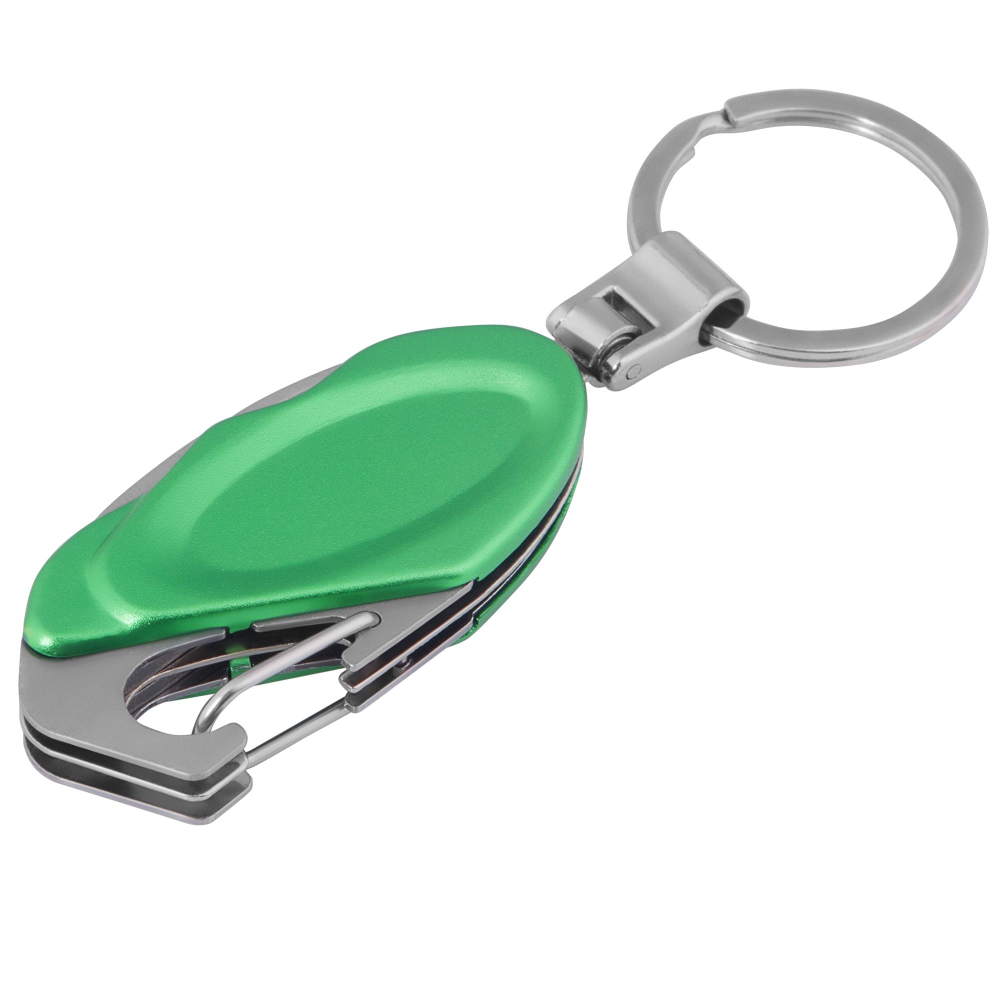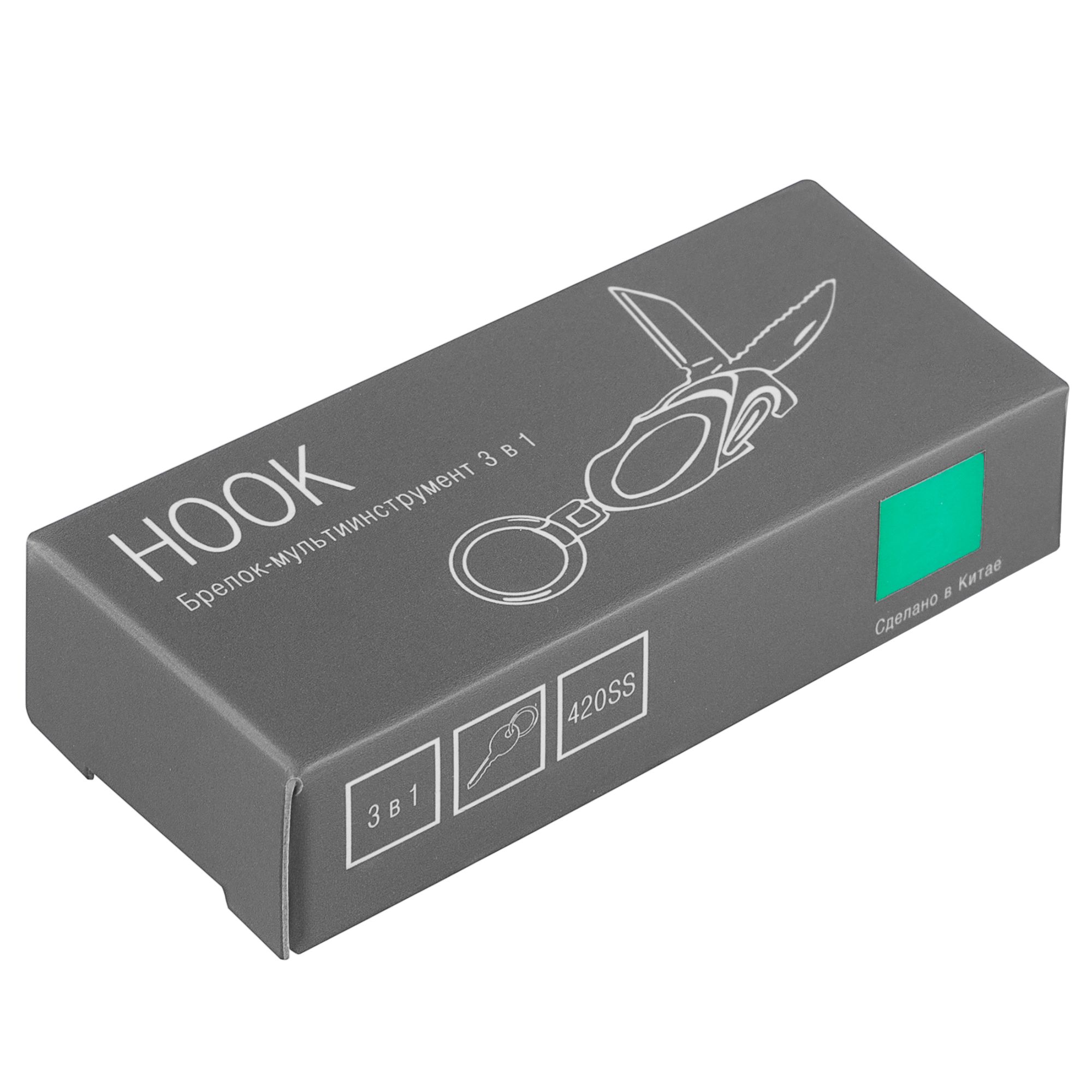 Мультитул hook, зеленый. Размеры в сложении: 5,8х2,7х1,5 см; упаковка: 7х3,2х1,7 см Материал инструменты - нержавеющая сталь; корпус - алюминий Вес (1 шт.) 75,00 г Транспортная упаковка 40,5x19,0x33,5 см Вес 15,00 кг Объем упаковки 0,026 м? Количество в упаковке 200 шт. Виды нанесения A2-Тампопечать (2 цвета) LM1-Лазерная гравировка по металлу Многофункциональный инструмент, 4 функции:Гладкое лезвие Зазубренное лезвие Карабин Кольцо для ключей