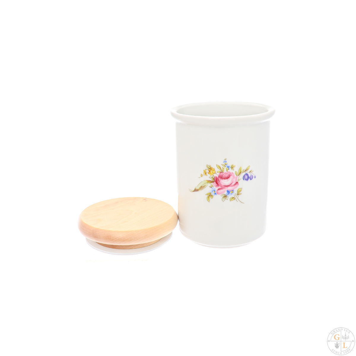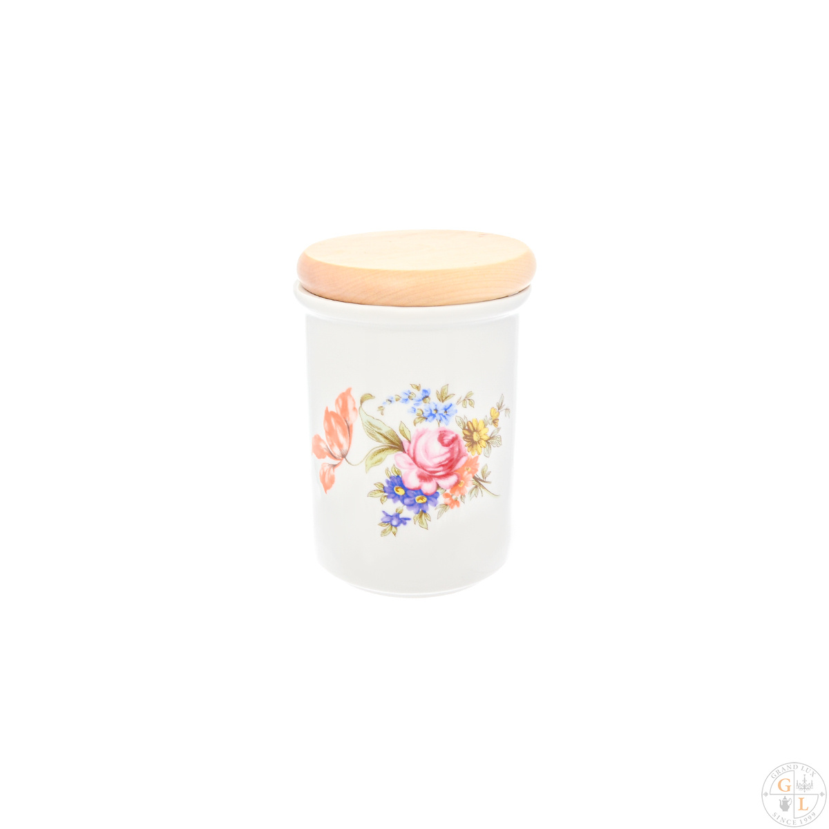 Банка для сыпучих продуктов с деревянной крышкой Dubi цветочный мотив 550