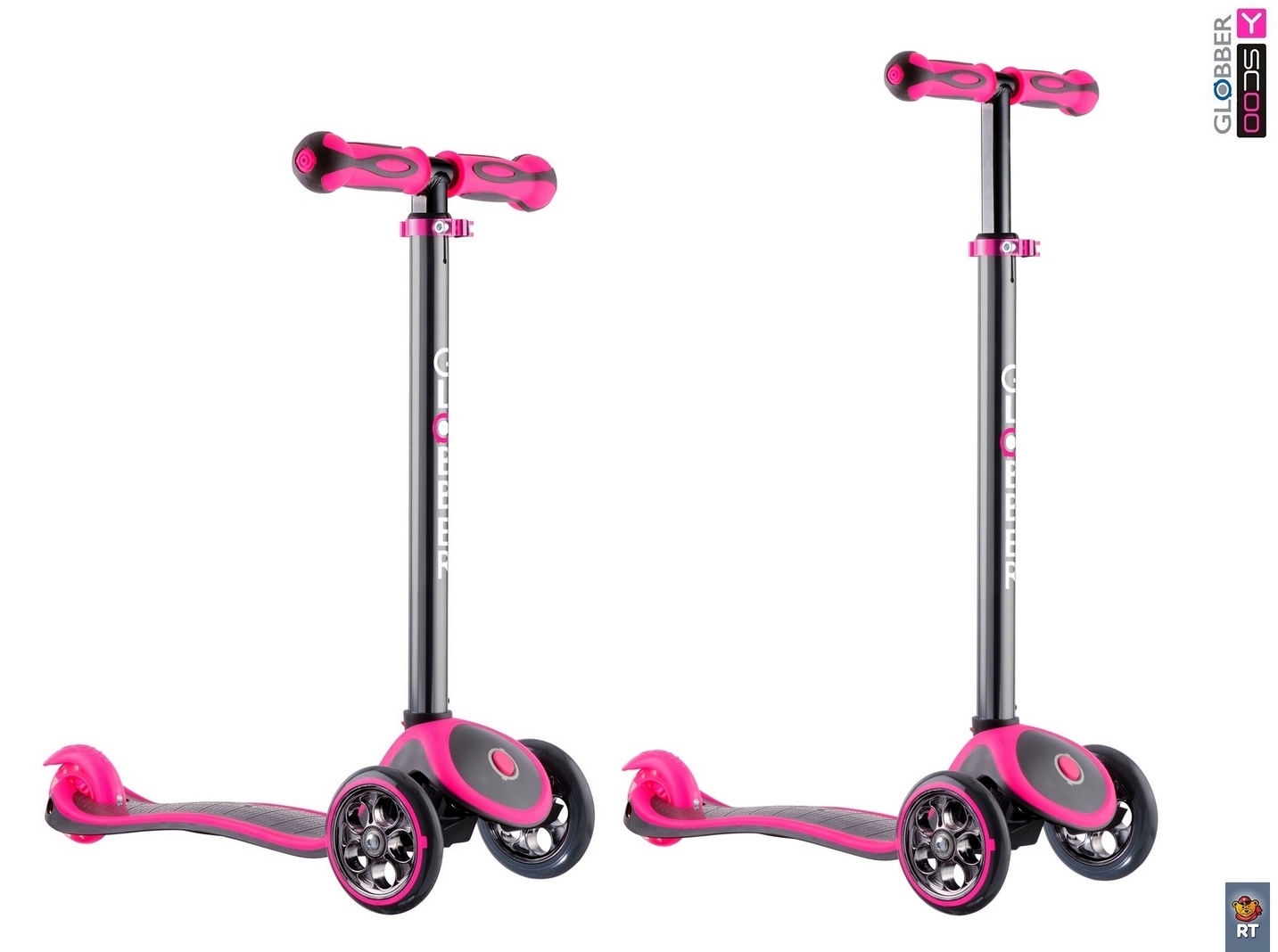 Y-scoo rt globber my free titanium neon pink с блокировкой колес. Встречайте новинку от Y-SCOO- Globber TITANIUM с блокировкой передних колес! Мы усовершенствовали многое: передние колеса мы сделали черными, не прозрачными как были раньше, материал колес стал полым, изменили форму и цвет дисков -теперь от них невозможно оторвать взгляд, цвет ручки - titanium, задний тормоз мы сделали цветным, и не могли удержаться- мы покрыли эксцентрик на ручке самоката анодным цветным переливающимся слоем, чтобы Вы не смогли устоять перед покупкой! Совершенство во всем- дизайн, цвет, качество и возможности этого самоката! Он не зря назван TITANIUM- его титановый цвет с неоновыми полосками покорит любого обладателя этого совершенства. Диски очень красиво будут переливаться на солнце- титановый хромированный цвет украсил новые черные колеса Globber. Это инновационный самокат, с глобальным подходом к созданию самоката идеально подходит для развития ребенка. Поэтому он и получил название Globber. Он глобален еще в том, что растет вместе с Вашим ребенком от 2 до 6 лет. Новая концепция в дизайне 3-х колесного самоката. Новая концепция в управлении. Заблокируйте 2 передних колеса простой кнопкой, чтобы малыш не смог завалиться на бок. Это уникальная находка наших инженеров- она поможет любому малышу в процессе обучения катанию на самокате. С этой инновационной функцией замка Ваш ребенок не упадет с самоката при обучению езде. А устойчивость самоката придаст малышу дополнительную уверенность. Он легко и бесстрашно будет осваивать самокат. Если Вы ищите первый самокат для своего малыша- нет самоката лучше Globber. Уникальная разработка платформы с резиновыми бортиками по краям не даст ножке малыша соскользнуть с платформы. Мы также тщательно продумали форму платформы, на которой ноги малыша не будут уставать. Мы укрепили платформу тонкой и прочной стальной пластиной. Теперь малыш может прыгать на самокате –он выдержит любую нагрузку. Платформа имеет антискользящую поверхность. 2 передних колеса диаметром 121мм, и 1 заднее колесо диаметром 80 мм изготовлены из прозрачного высококачественного полиуретана PU HQ (high quality)с нейлоновым наполнителем. Материал колеса HQ имеет высокую степень отскока. Высокоточные и скоростные подшипники ABEC 5 608ZZ. Регулировка-трансформирование самоката по мере роста ребенка от 2 до 6 лет:Алюминиевая ручка-телескопик меняется по высоте. 4 положения : 64х68х72х76 см. Инновация - Безопасность обучения:Единственная в мире запатентованная система блокировки передних колес. Часто дети , которые только обучаются езде на самокатах с такой системой- наклон вправо- поворот вправо, наклон ручки влево- поворот влево, не умея еще уверенно держать равновесие, заваливаются на бок. Инженеры творческой мысли создали инновационную систему блокировки колес. Таким образом, чтобы помочь ребенку сначала освоить самокат , Вы сможете заблокировать колеса ( нажать на кнопку сверху панели самоката), и малыш спокойно может сначала учиться ездить только вперед. А потом, разблокировав колеса (нажать на красную кнопку под самокатом), Вы можете показать и научить малыша поворачивать, не боясь, что он упадет на бок. Это очень безопасно и легко при первых уроках обучению на самокате. Эргономика ручек на руле:Эргономичные прорезиненные ручки из эластичного двухкомпонентного материала с добавлением латекса необы