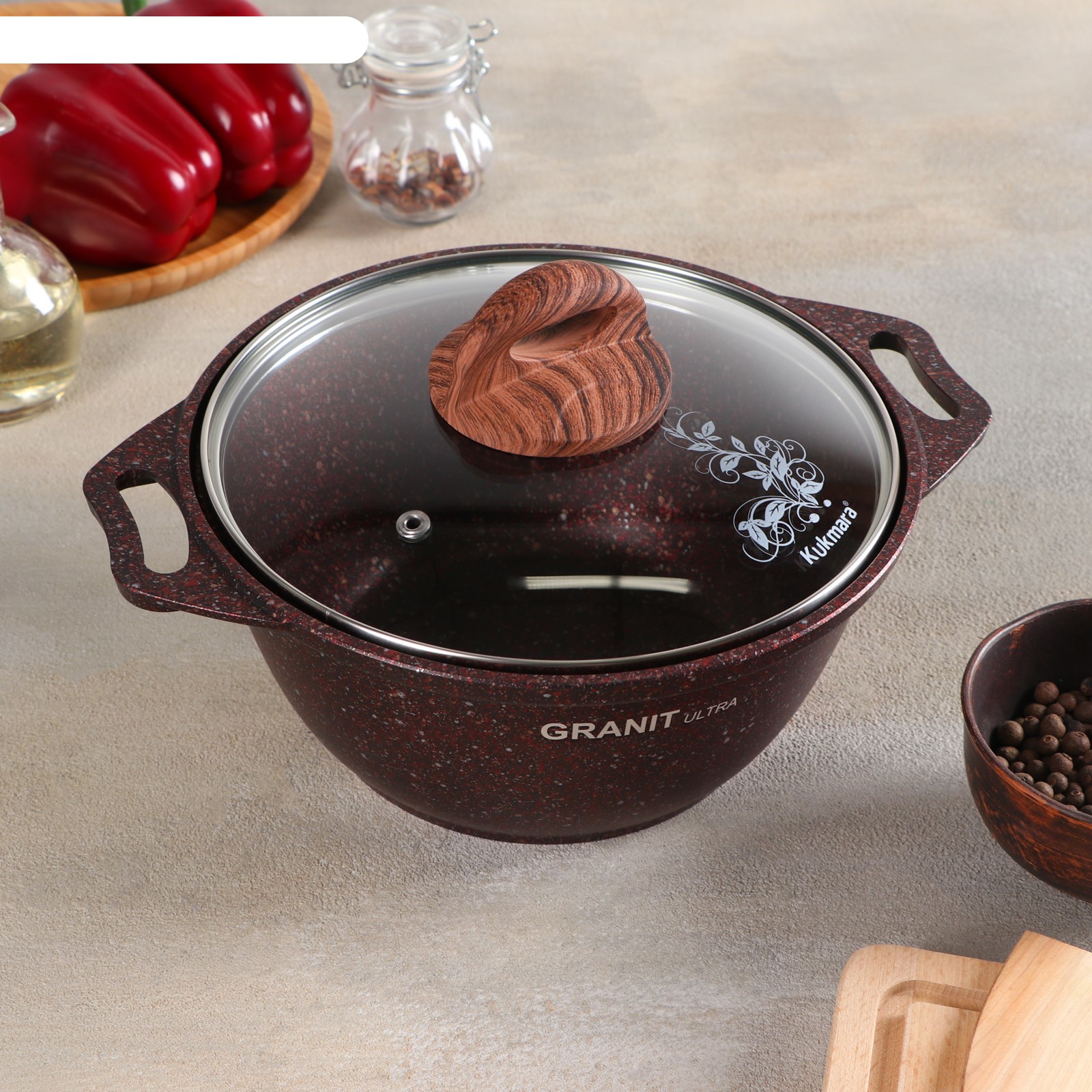 Кастрюля Granit Ultra, 2 л, со стеклянной крышкой, ап линия, цвет красный