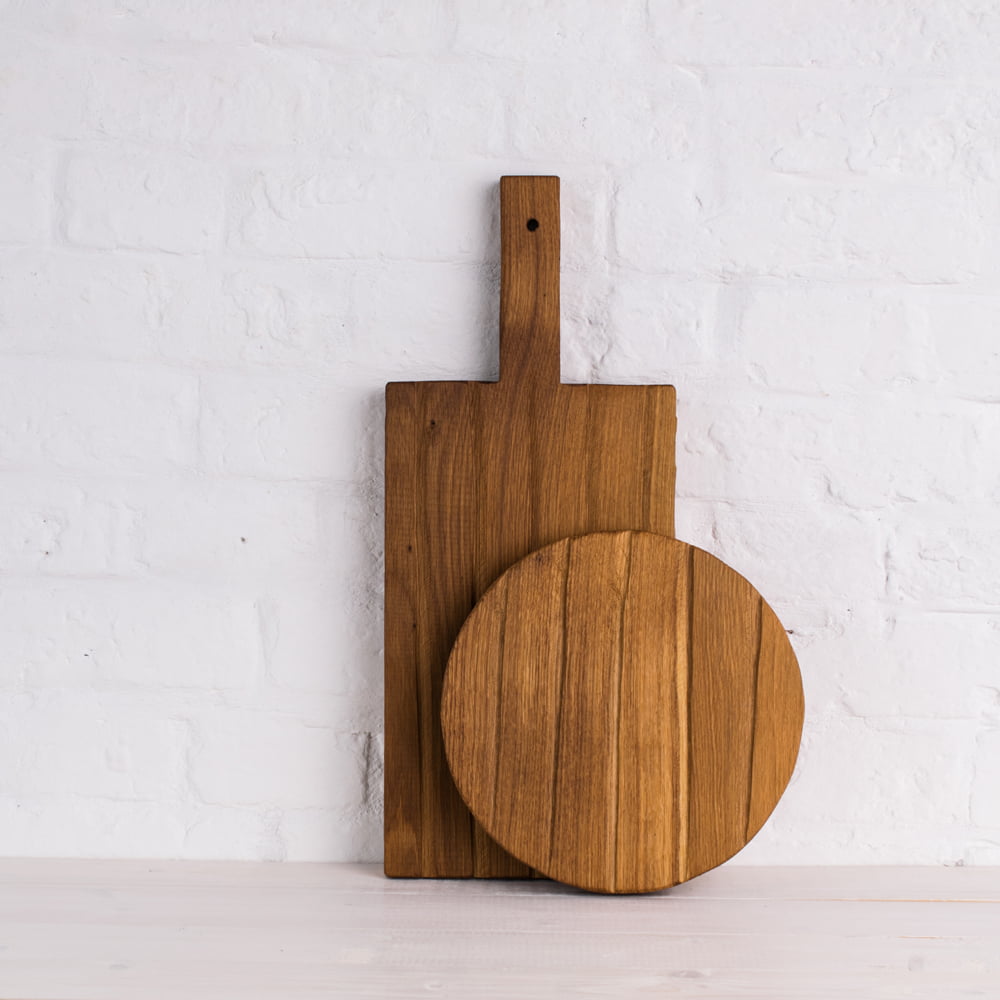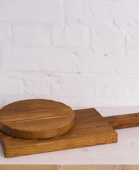 В наборе разделочные доски Поле: вытянутая и круглая без ручки