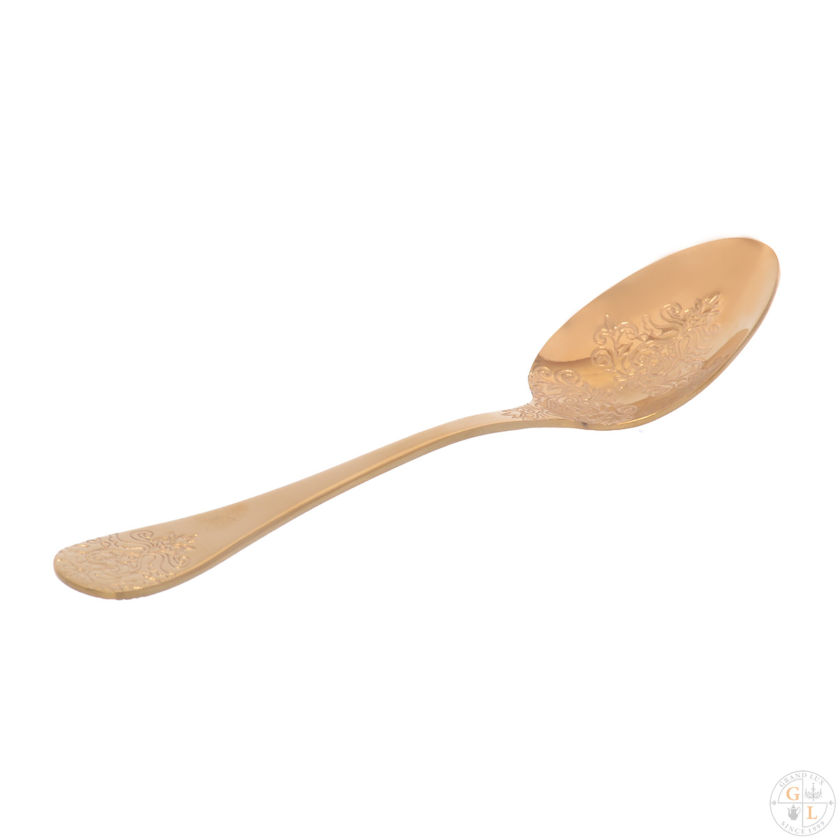 Набор чайных ложек herdmar pompadour (6 шт). Набор чайных ложек Herdmar Pompadour (6 шт) Столовые приборы с оригинальными орнаментами не только украсят стол, но и станут удобным аксессуаром за обедом. Особое внимание приковывает необычное напыление медового оттенка, которое получается благодаря электролитному напылению 24-каратного золота на изделия. Чайные ложки имеют высокую прочность и отменное качество, поэтому могут использоваться как для торжественных случаев, так и каждый день. Тип товара столовые приборы (Португалия, Нержавеющая сталь, Herdmar) Страна происхождения Португалия Материал Нержавеющая сталь Бренд Herdmar Серия Pompadour Назначение Столовые приборы