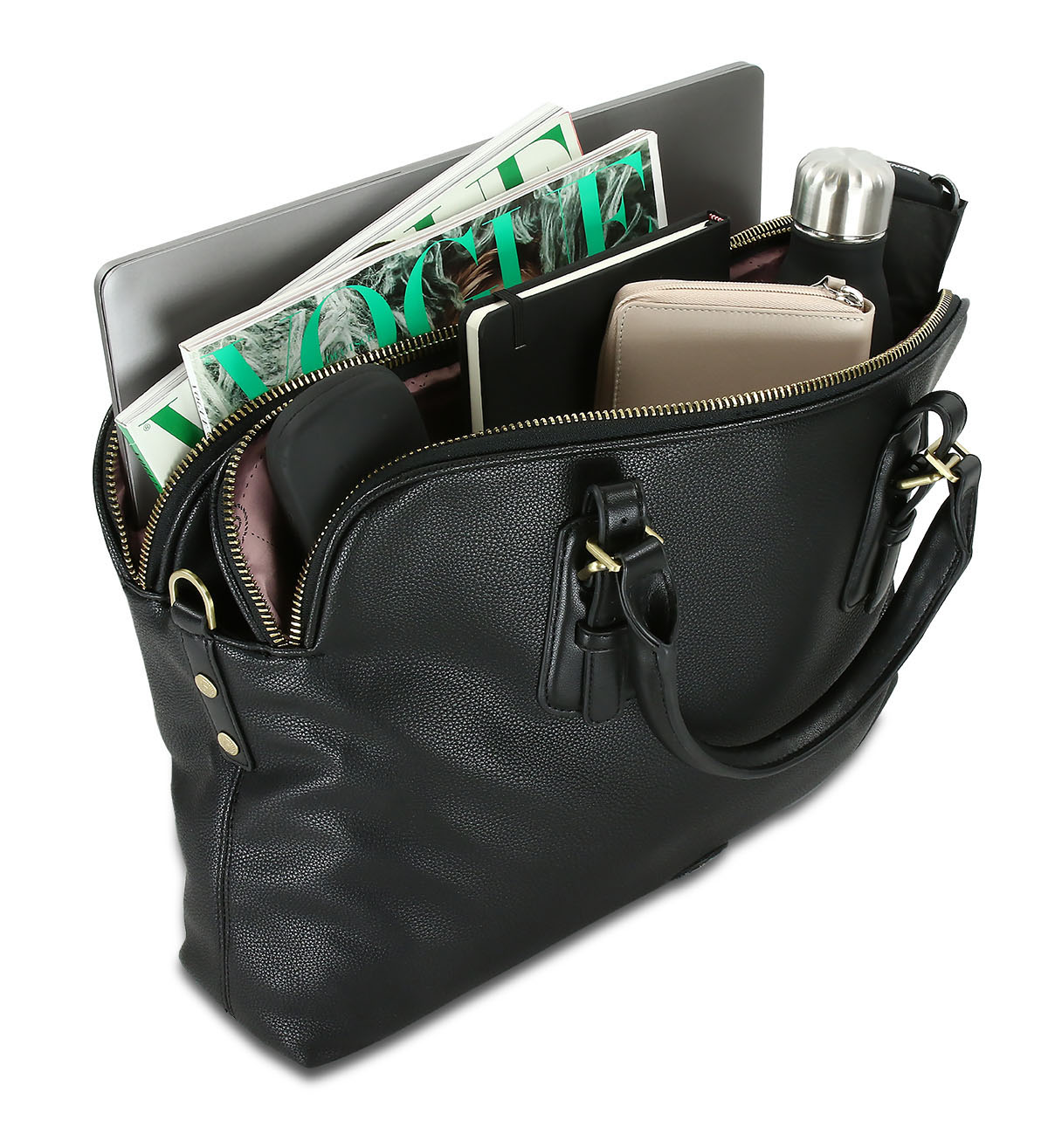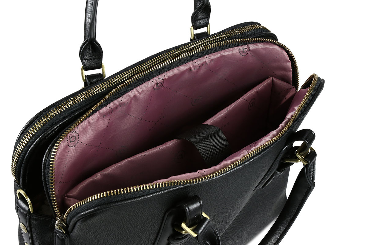 Сумка-портфель женская Bugatti Passione 15 , чёрная, полиуретан, 40х9,5х3