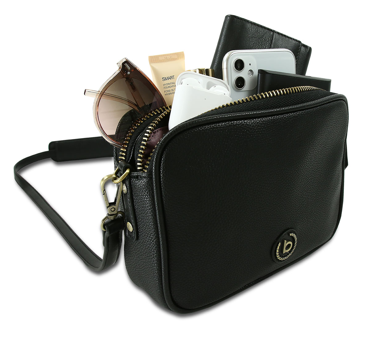 Сумка кросс-боди женская Bugatti Passione, чёрная, полиуретан, 22х7х16,2 с