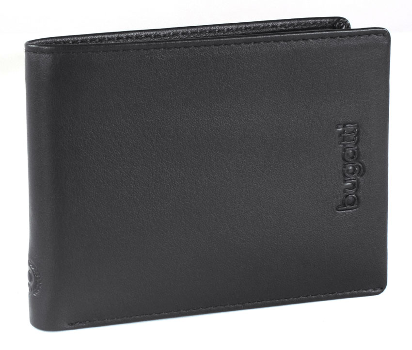 Портмоне Bugatti Vertice, чёрное, натуральная воловья кожа, 10,5х1,5х8,5 с