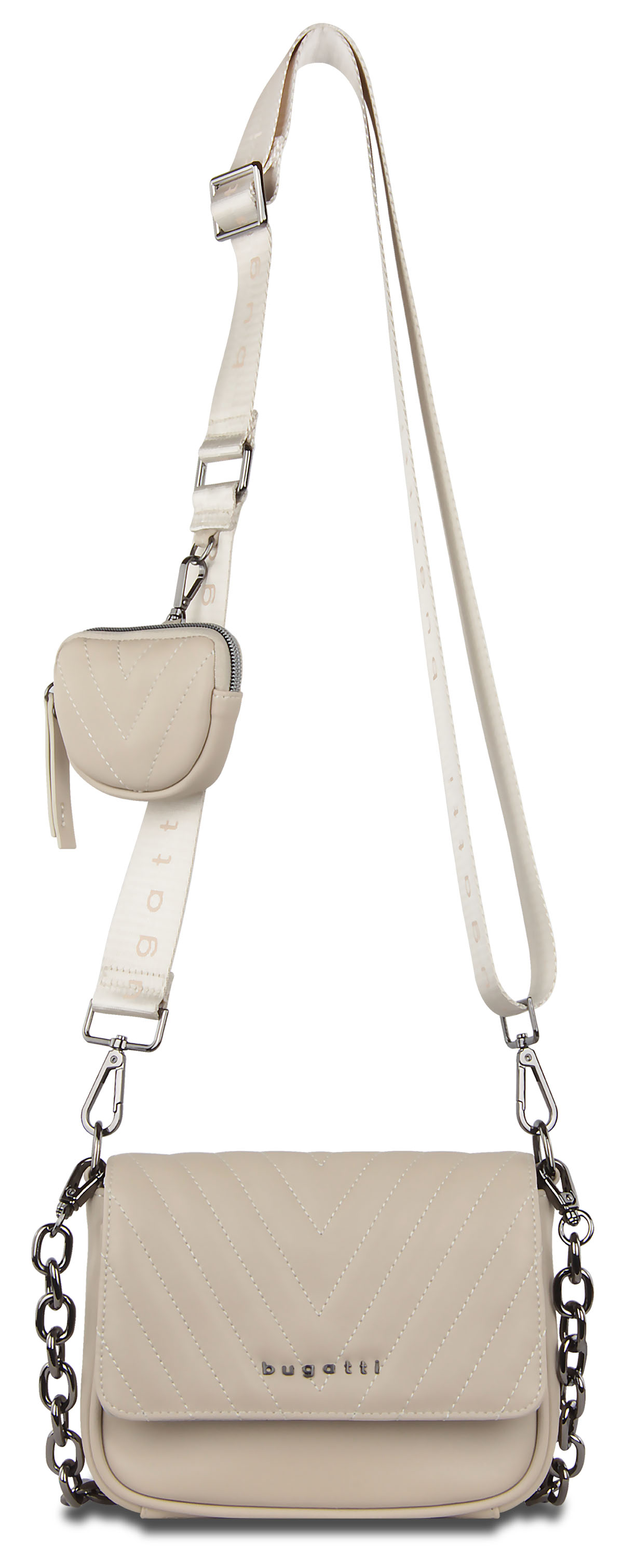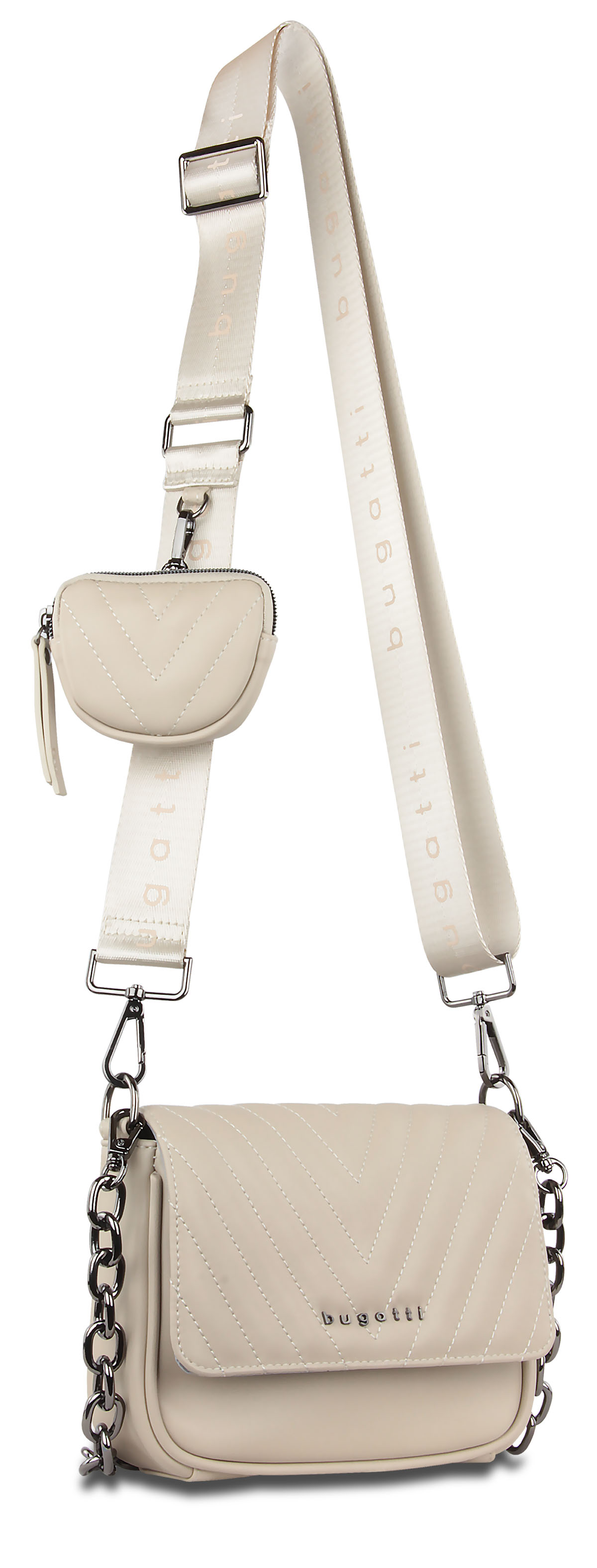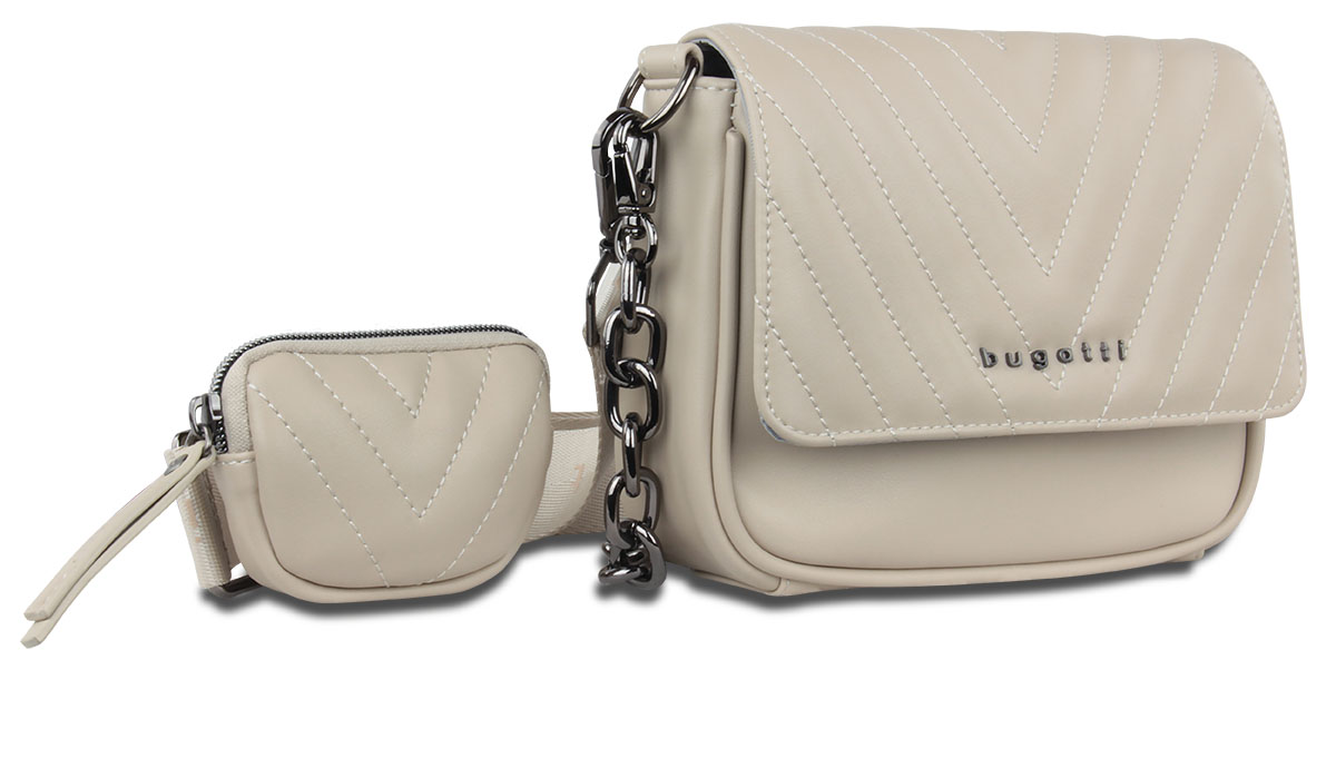 Сумка наплечная женская Bugatti Sira, бежевая, полиуретан, 21х6х16 см