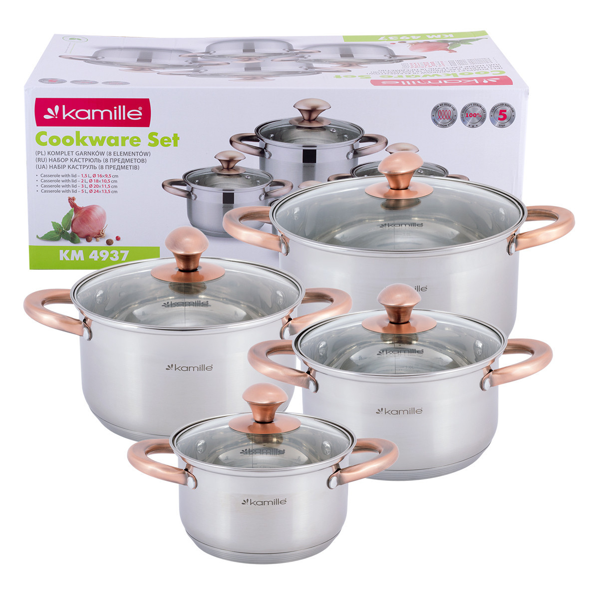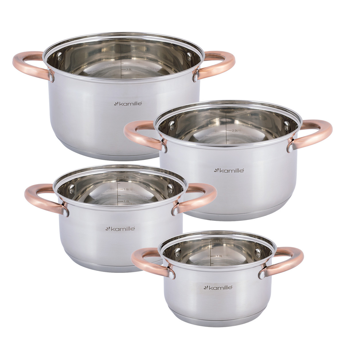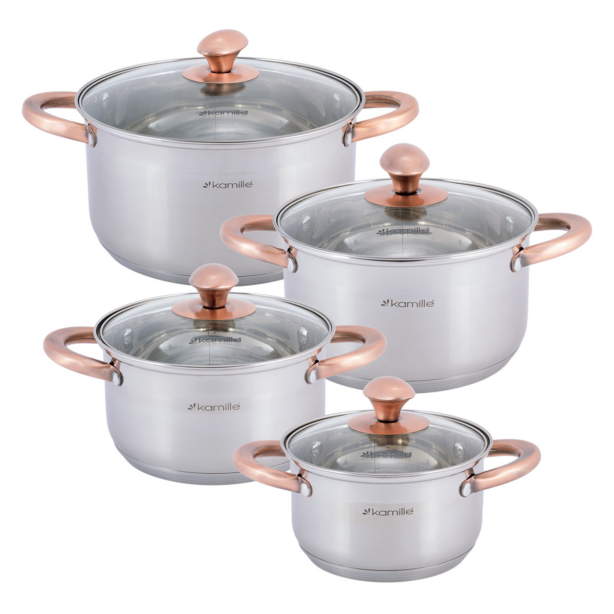 Набор кастрюль Kamille из нержавеющей стали 8 предметов для индукции и газ