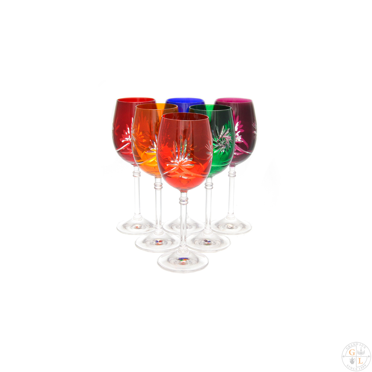 Набор бокалов для вина цветной хрусталь 150мл(6 шт)