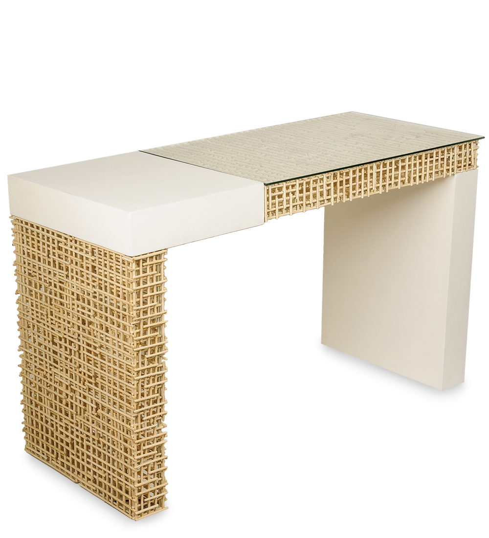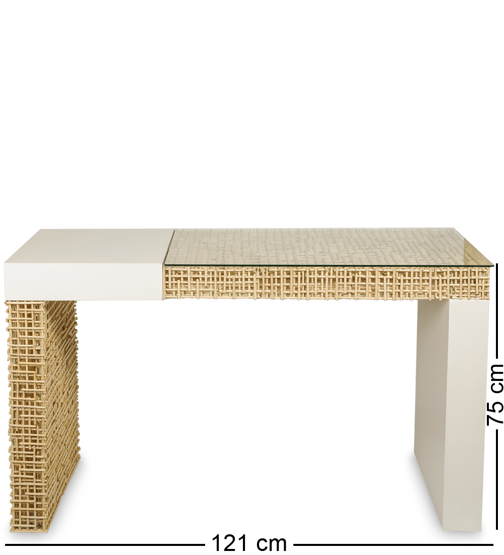 Finali- 74 стол консольный переплетение. Материал: Дерево, метал, раттан. Страна производства: Индонезия Размеры изделия: Длина: 121 см Ширина: 51 см Высота: 75 см Вес: 21.3 кг. Размеры упаковки: Длина: 127 см Ширина: 56.5 см Высота: 81 см Вес: 27 кг.  развернуть описание ▼