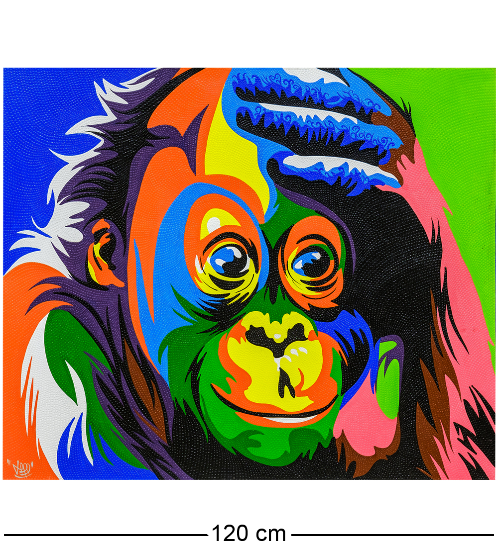 Art-506 картина радужная обезьяна. Материал: Холст, дерево Страна производства: Индонезия Страна бренда: Россия Размеры изделия: Длина: 120 см Высота: 100 см Толщина: 4 см Вес: 2.1 кг. Размеры упаковки: