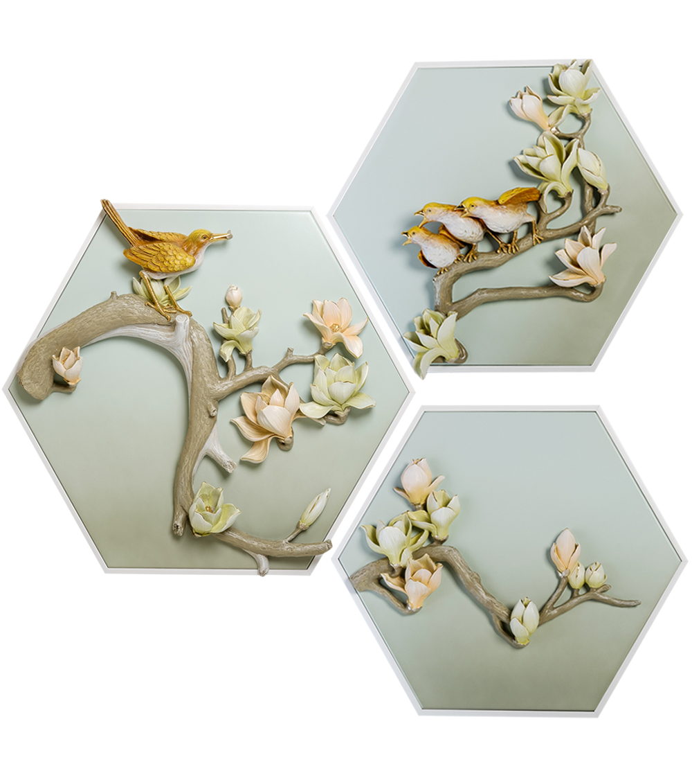 Art-325 триптих птицы на ветках сакуры