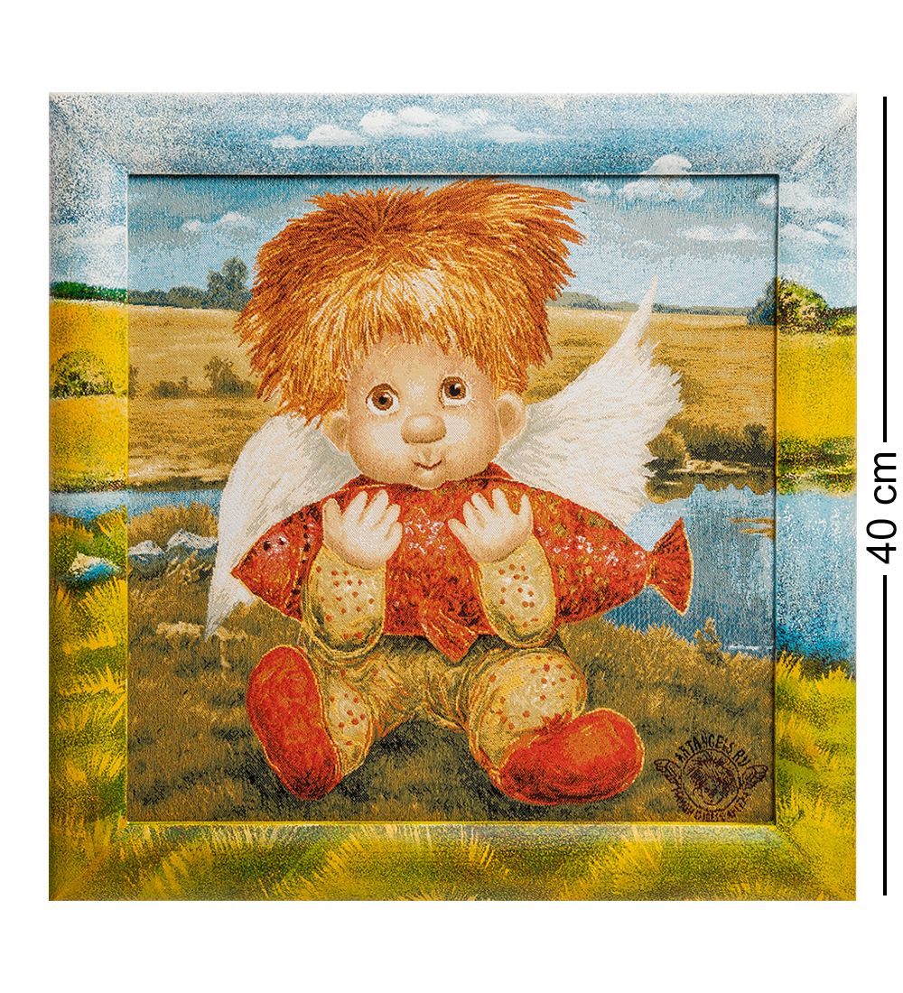 Ang-591 гобелен в расписной раме ангел успеха 35х35.
