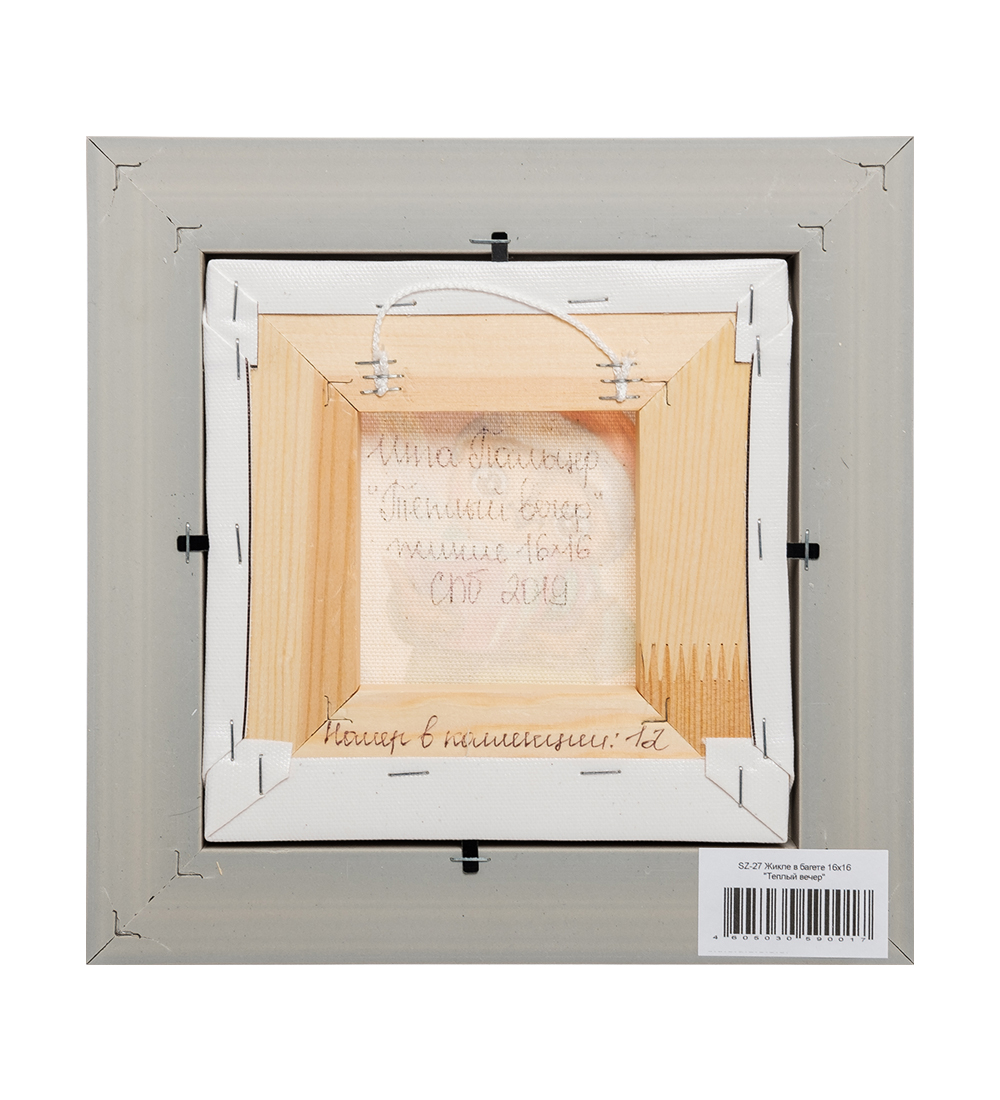 Sz- 27 жикле в багете теплый вечер 16х16. Параметры товара Материал: Гобелен, полиэстер Страна производства: Россия Размеры изделия Ширина: 22.5 см; Высота: 22.5 см; Вес: 0.5 кг. Размеры упаковки Длина: 22.5 см; Ширина: 22.5 см; Высота: 2.5 см; Вес: 0.5 кг.