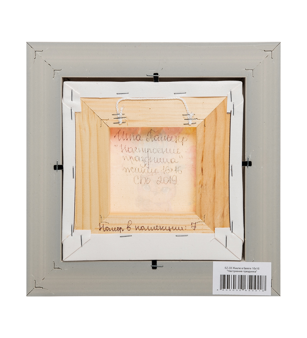 Sz- 33 жикле в багете настроение праздника 16х16. Параметры товара Материал: Гобелен, полиэстер Страна производства: Россия Размеры изделия Ширина: 22.5 см; Высота: 22.5 см; Вес: 0.5 кг. Размеры упаковки Длина: 22.5 см; Ширина: 22.5 см; Высота: 2.5 см; Вес: 0.5 кг.