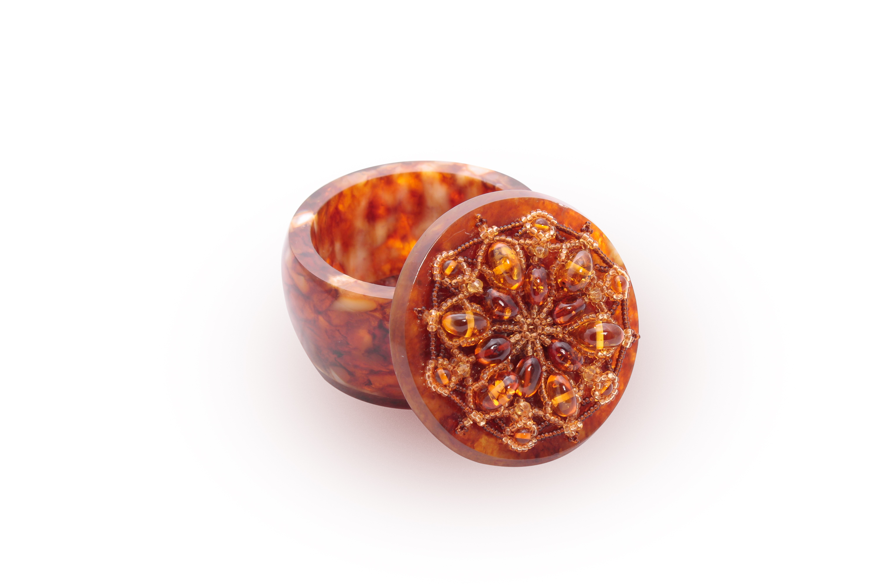 Шкатулка из янтаря "Лето" в бронзе Маленькая шкатулка из янтаря