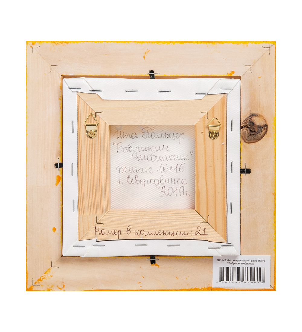 Sz-145 жикле в расписной раме бабушкин любимчик 16х16. Параметры товара Материал: Холст, дерево, акриловые краски Страна производства: Россия