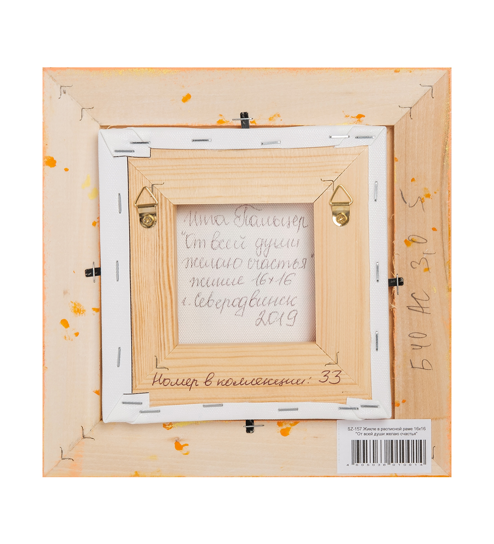 Sz-157 жикле в расписной раме от всей души желаю счастья 16х16. Параметры товара Материал: Холст, дерево, акриловые краски Страна производства: Россия