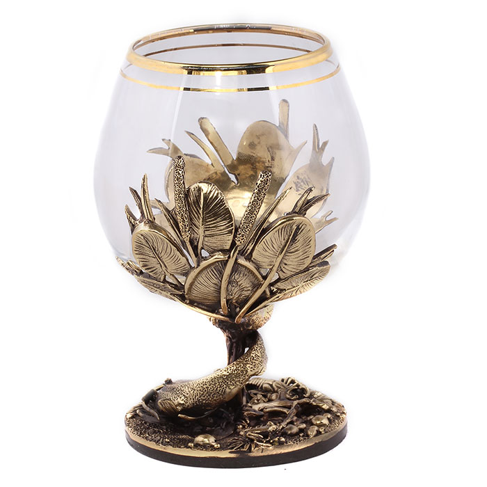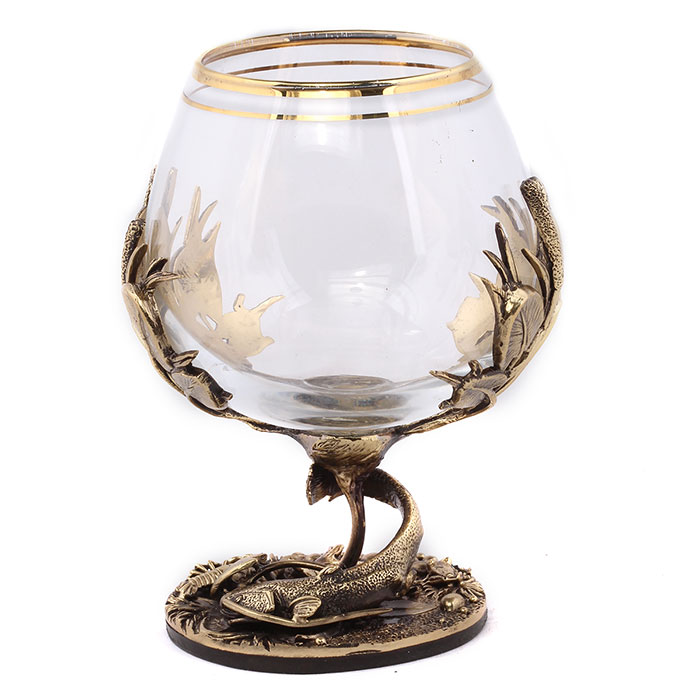 Бокал для коньяка сом (душа поет, когда клюет) в футляре пейсли