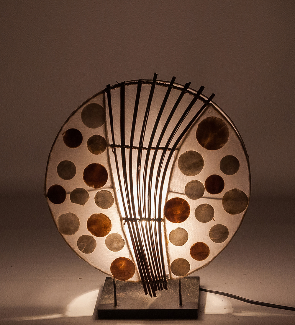 34-014 светильник из перламутра ракушка мал. e. Параметры товара Материал: Металлический каркас, ткань, дерево, перламутр Страна производства: Индонезия Страна бренда: Индонезия Размеры изделия Высота: 37 см; Вес: 0.6 кг. Размеры упаковки Длина: 30 см; Ширина: 15 см; Высота: 37 см; Вес: 0.7 кг.