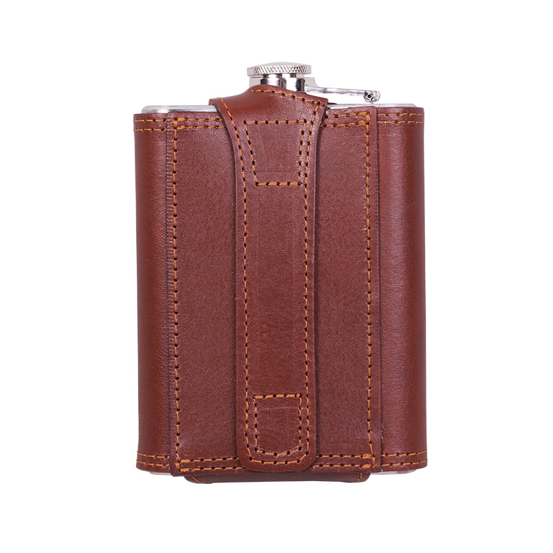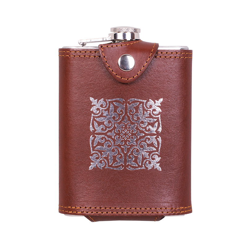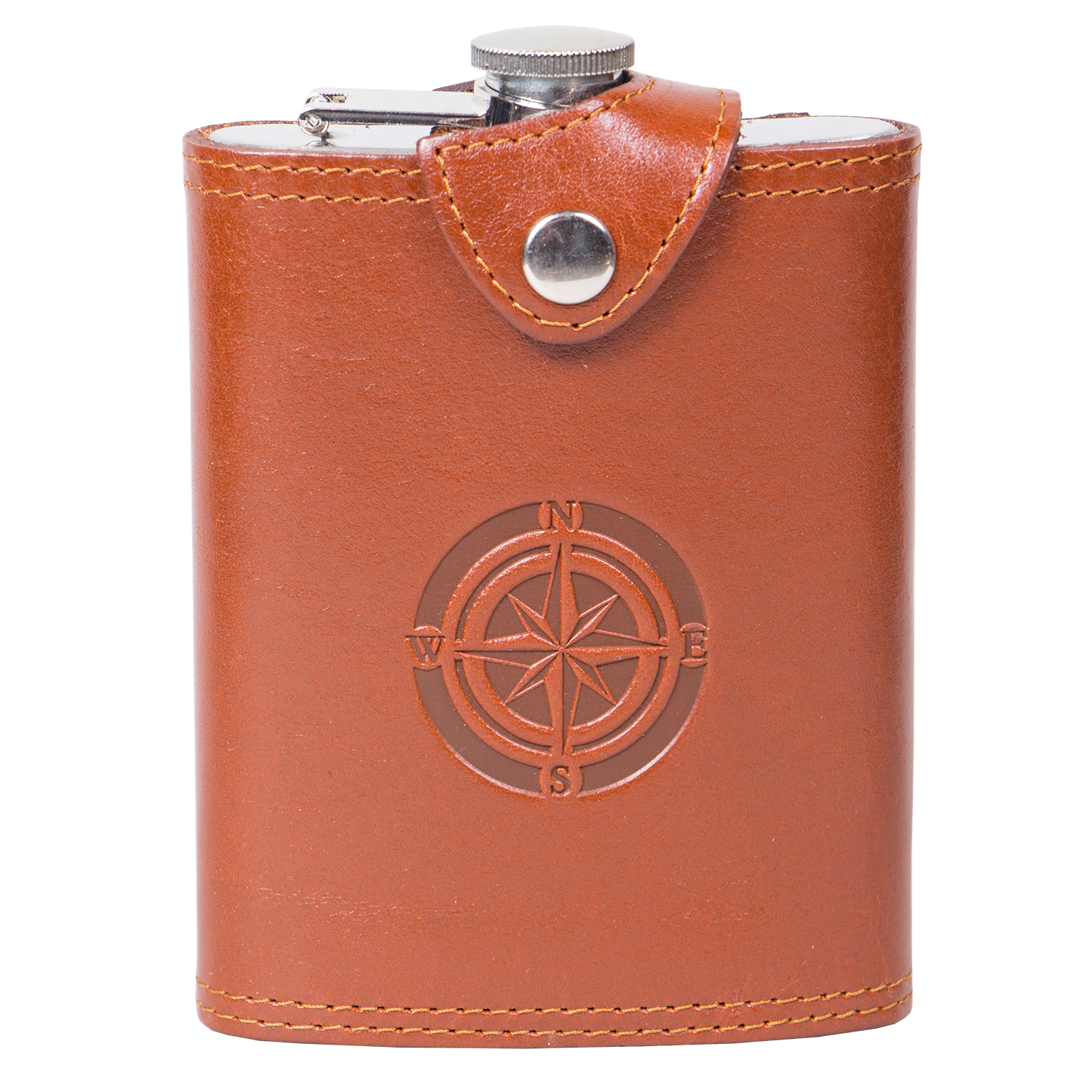 Фляга походная 0,24 л в чехле из натуральной кожи