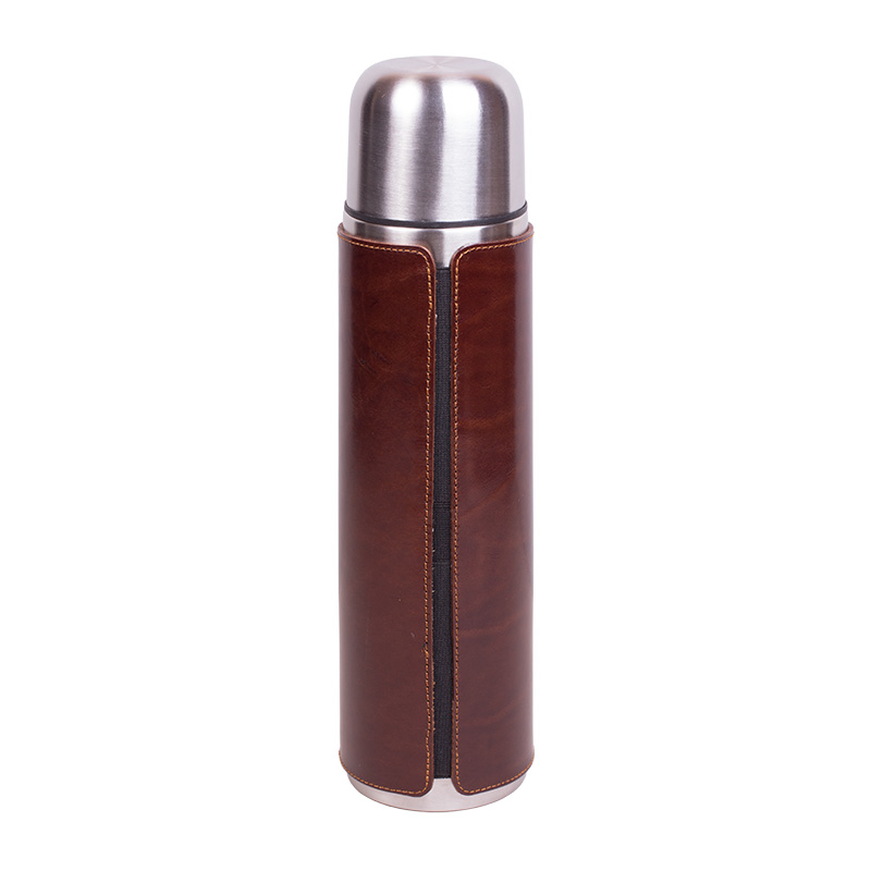 Термос походный 1л в чехле из натуральной кожи. 1. Термос из нержавеющей стали 1 л в чехле из натуральной кожи с тиснением рисунка 1 шт. 2. Чехол из спанбонда (нетканый мягкий материал) 1 шт.