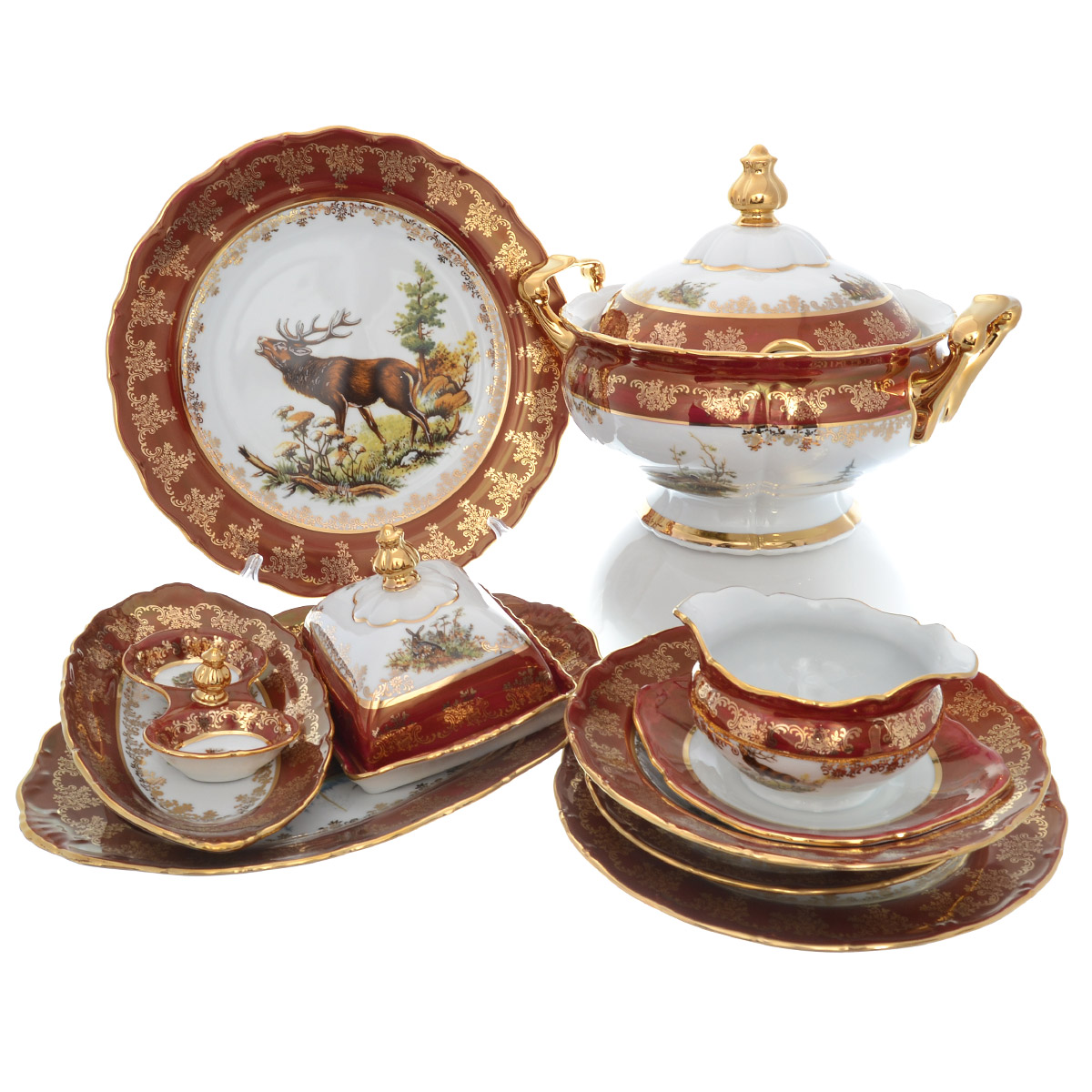 Столовый сервиз на 6 персон Queen S Crown Aristokrat охота красная 27 пред