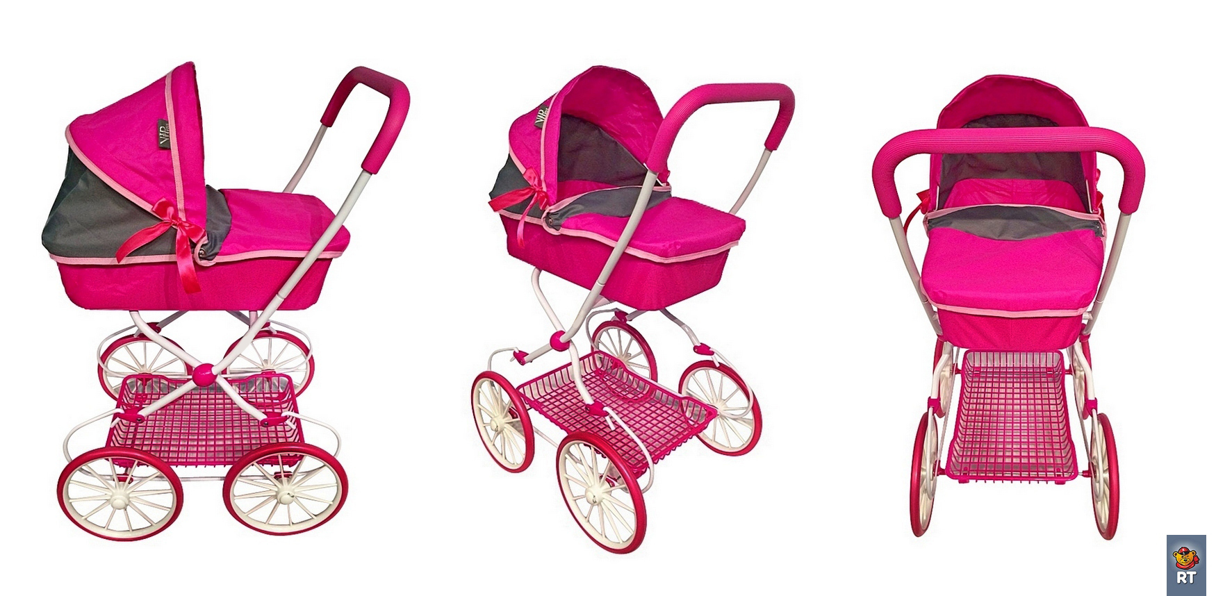 603 кукольная коляска rt цвет фуксия+серый. Элегантная классическая коляска для кукол на больших колесах цвета фуксия с белыми спицами. Атласные бантики и белоснежная рама придают коляске изысканность и утонченность. Эта закрытая коляска выглядит как маленькая копия настоящей современной коляски для детей. У нее есть все как у настоящей коляски: багажник внизу, складной капюшон, ручка из мягкого материала. Люльку с капюшоном можно переставлять лицом к маме и лицом к дороге. Маленькая заботливая мама обязательно оценит это. Также ей понравится уникальность этой модели- благодаря специальным креплениям на раме, коляску можно качать. Юная мама быстро укачает куклу перед сном. Уникальные колеса- они прорезиненные сверху, что дает плавность и мягкость хода. И конечно же, эти колеса не гремят по дороге. Благодаря амортизаторам обеспечивается плавность хода, устойчивость и проходимость. Высота коляски - 85 см. Высота ручки - 83 см. Коляски для кукол - непременный атрибут игры в дочки-матери. Коляски для кукол от являются маленькими многофункциональными копиями настоящих детских колясок. . Прочие Торговая Марка RT ШтрихКод 2017812504341 Базовая единица шт Размер (см) 46х85х59 Артикул 00000005179 Вес (кг) 3. 88 Размеры в упаковке (см) 37х56х15 Вес в упаковке (кг) 4. 88 Объем в упаковке 0. 03 Артикул2 603 фуксия-серый Бренд RT
