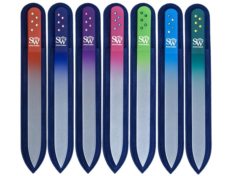 Пилочка sw-05-c стеклян. цветн. 2-х стор. 5 страз 140 мм. в барх. чехле, р.