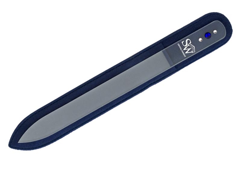 Пилочка Sw-03 стеклян. 2-х стор. 3 стразы 140 мм. в барх. чехле, ручн. раб