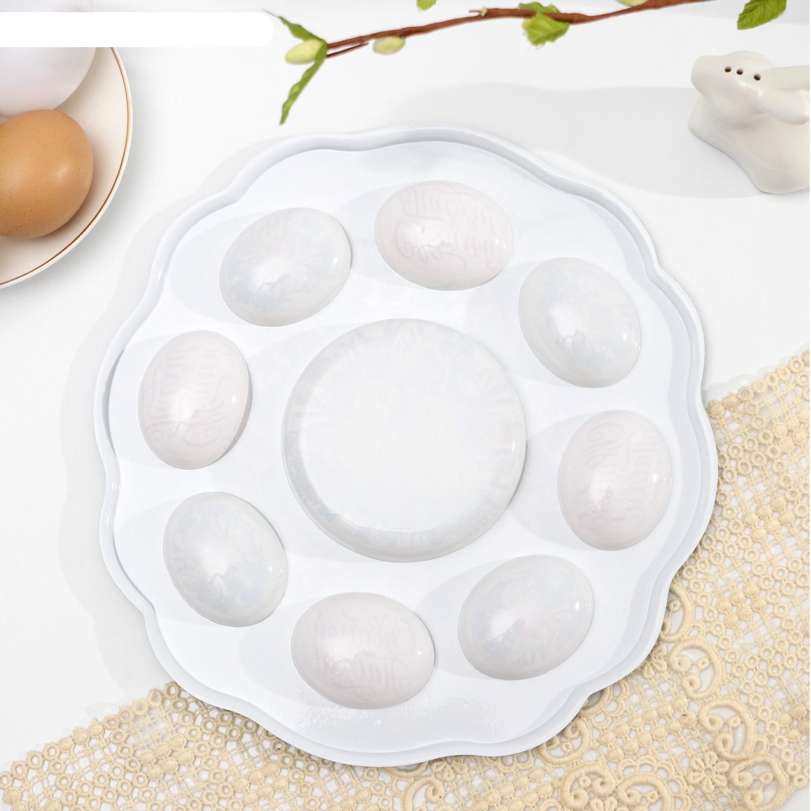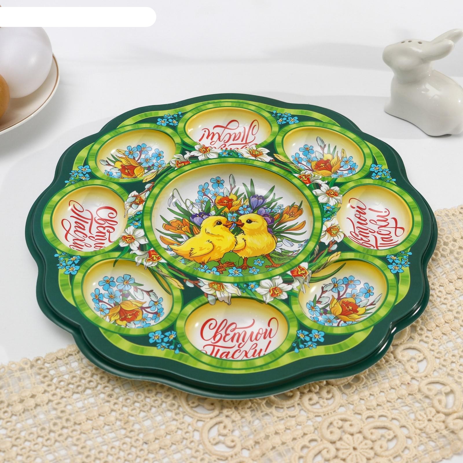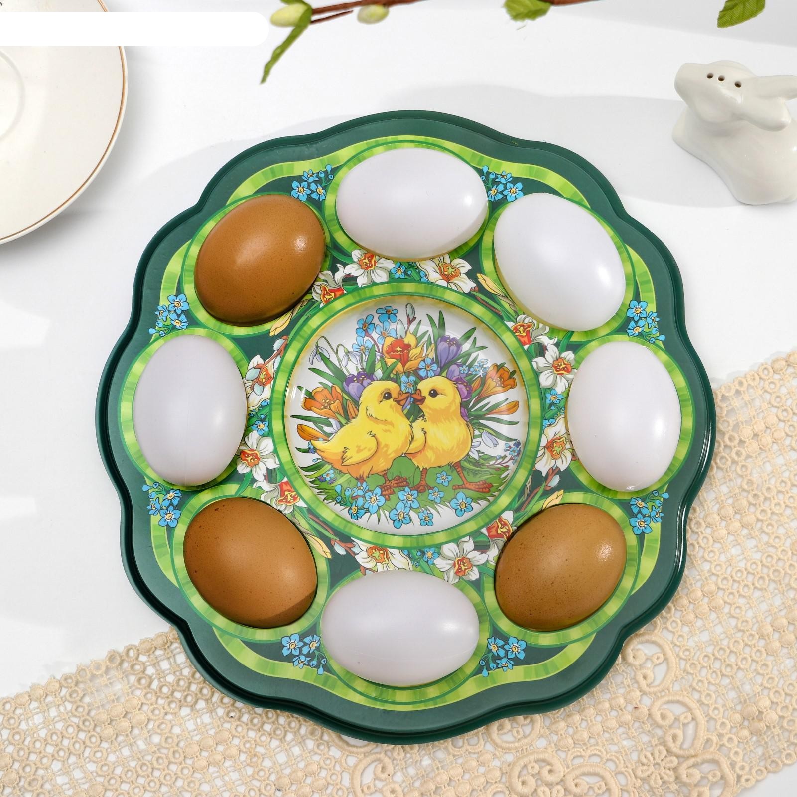 Пасхальная подставка на 8 яиц и кулич «цыплята в цветах», 24 х 25 см