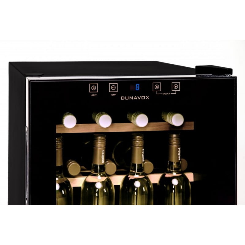 Винный шкаф dunavox home dx-16.46k, товары для загородного дома. Винные холодильники Dunavox серии HOME служат для правильного хранения и демонстрации коллекции вин. Компактная модель DX-16.46K подходит как для дома, так и для небольших ресторанов. Винный холодильник DX-16.46K выполнен в элегантном черном корпусе.Модель укомплектована двумя полками из натурального дерева и одной металлической демонстрационной полкой для вертикальной установки бутылок. Шкаф имеет одну зону охлаждения. В верхней части есть сенсорная панель, с помощью которой пользователь выбирает необходимый температурный режим работы аппарата. На ней расположены сенсорные кнопки для регулировки температуры и включения освещения. Данные термостата демонстрирует цифровой экран с подсветкой. nbsp Дверца шкафа с тонированным стеклом c защитой от ультрафиолетовых лучей и встроенной ручкой, открывается на 100 градусов. nbsp Вместительный и компактный винный шкаф Dunavox DX-16.46K – идеальный выбор для рабочего кабинета или дома. Винный шкаф может использоваться как отдельностоящий, так и встроенный, с соблюдением необходимых для охлаждения зазоров 1-5 см, т.к. охлаждение винного шкафа осуществляется через нагрев боковых стенок. А также под винным шкафом желательно сделать воздухозаборную решетку с выводом воздуха за винный шкаф. Это позволит охладить компрессор. При открытии двери она выходит за корпус шкафа на 1,5 см. Тип охлаждения Компрессорный Тип установки Отдельностоящий Размеры шкафа, см 510х430х480 Количество зон Одна Объем, Л 46