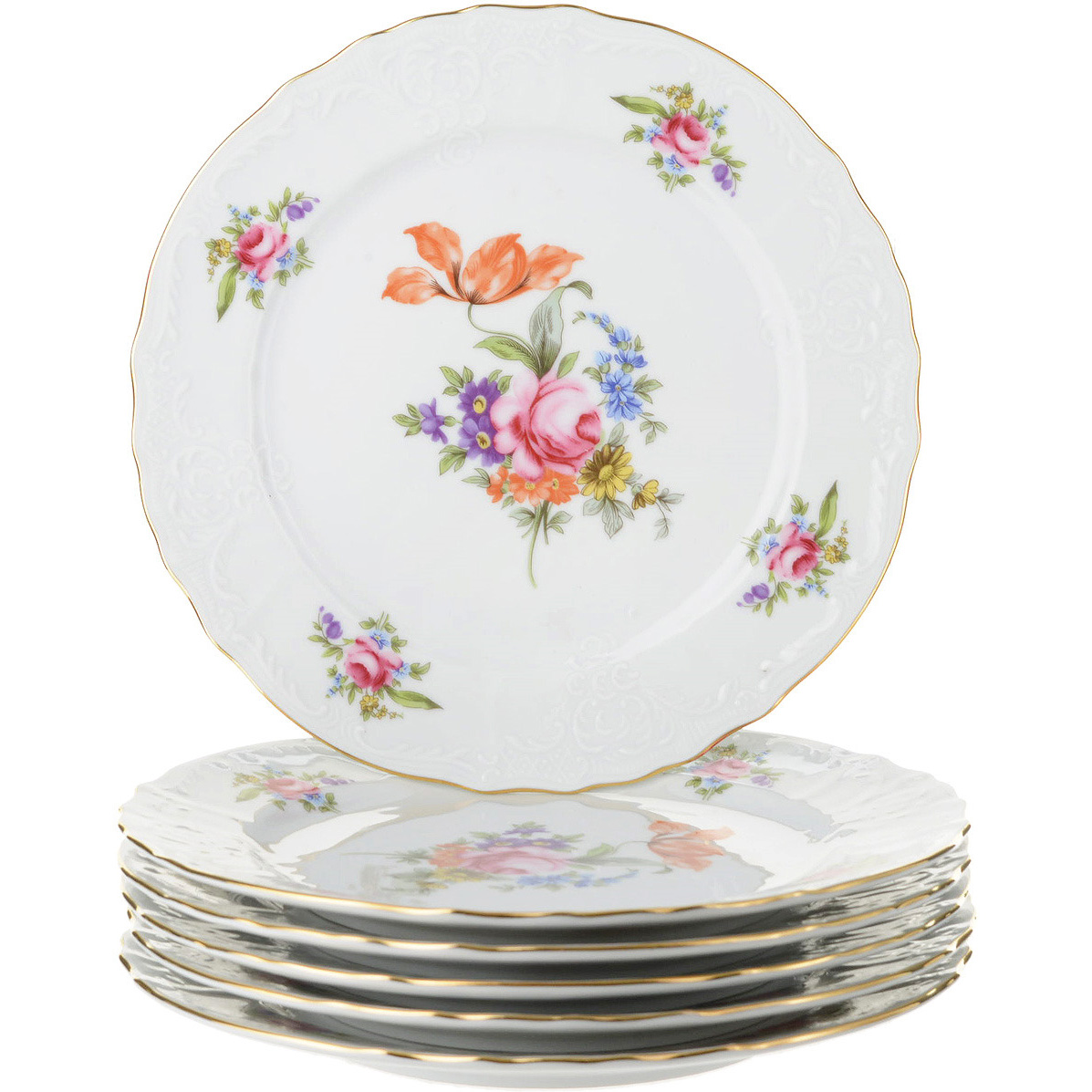 Набор тарелок на 6 персон мелкая 21 см Bernadotte, декор мейсенский букет