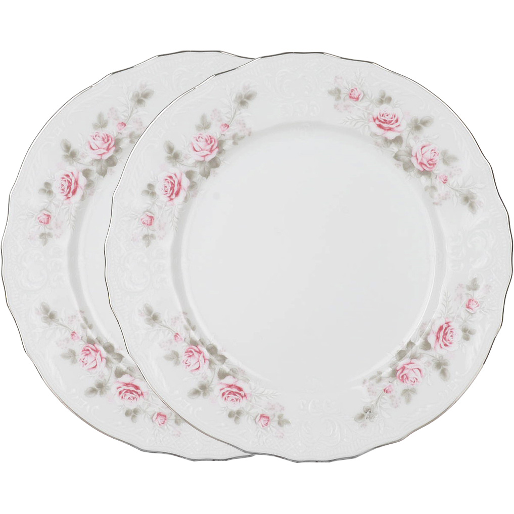 Набор из 2-х тарелок десертная 19 см Bernadotte, бледные розы платина