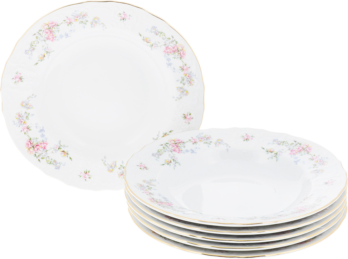 Набор из 4-х тарелок, глубокие 23 см Bernadotte, дикая роза золото
