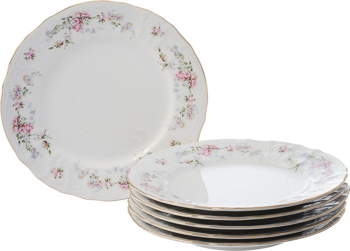 Набор тарелок на 6 персон, десертные 19 см Bernadotte, дикая роза золото