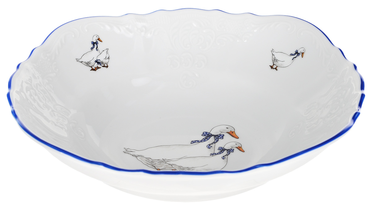 1шт салатник круглый 23 см Bernadotte, декор гуси