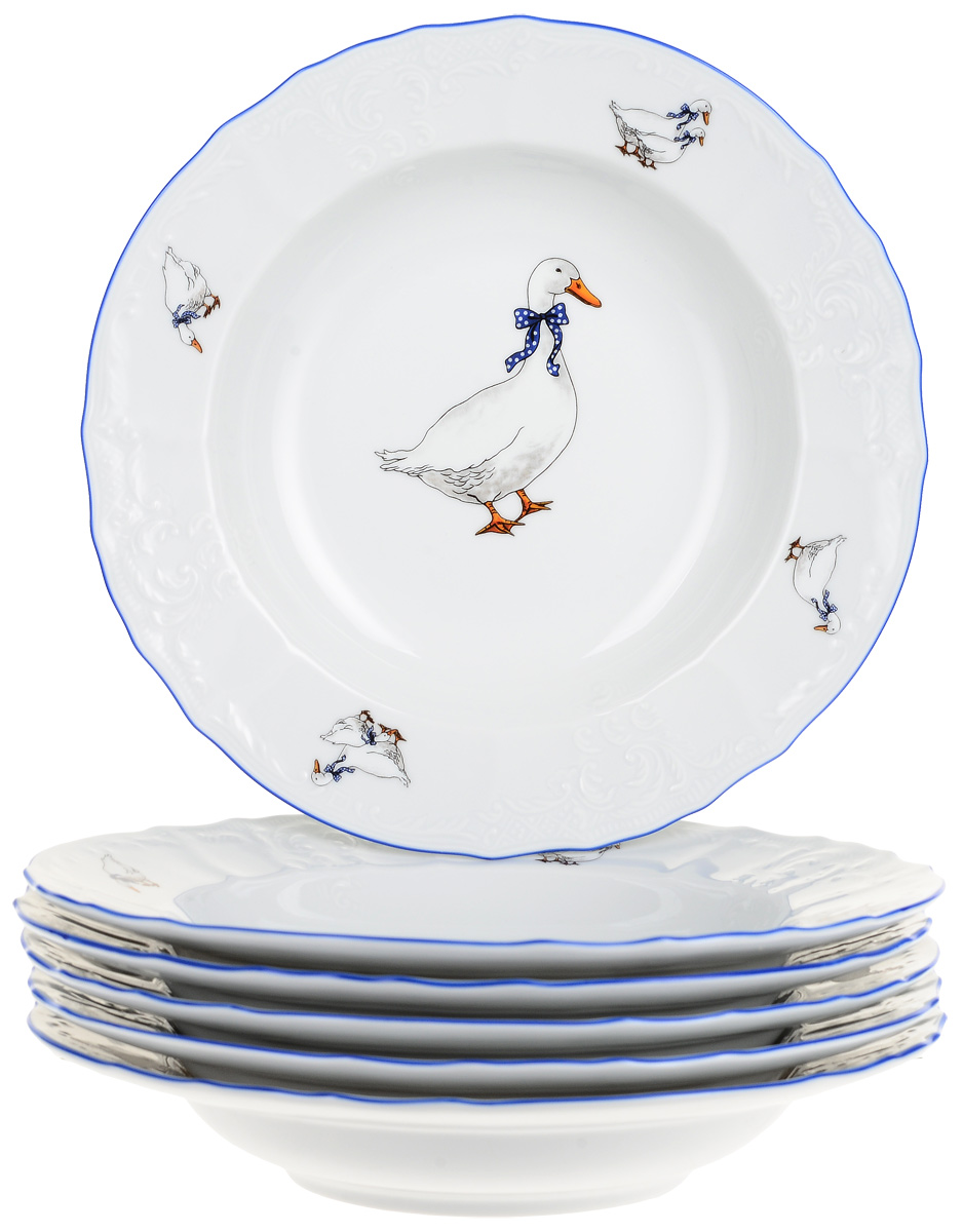 Набор тарелок на 6 персон глубокая 23 см Bernadotte, декор гуси