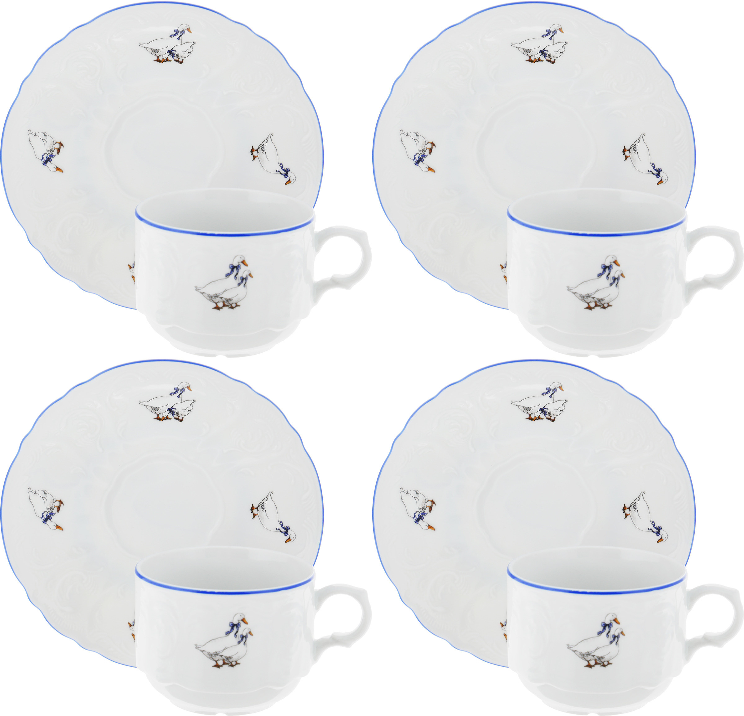 Набор из 4-х чайных пар 240 мл с блюдцем 150 мм низкая Bernadotte, гуси