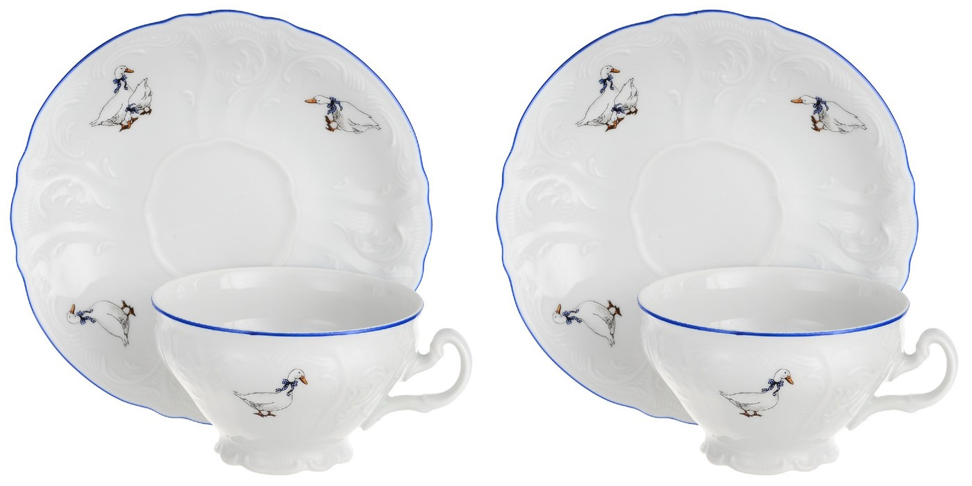 Набор чайных пар на 2 персоны 360 мл низкая Bernadotte гуси