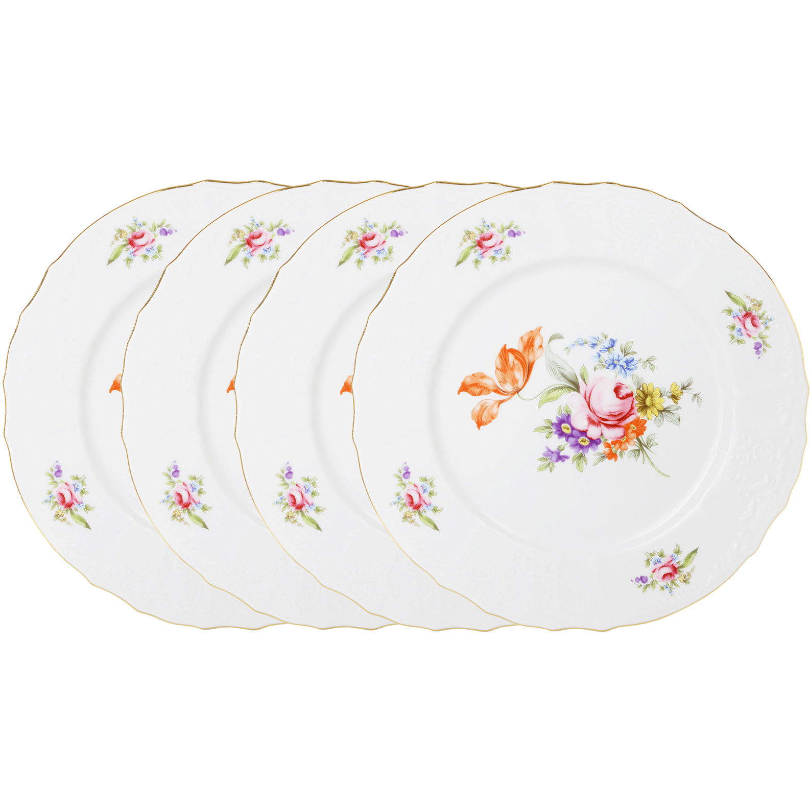 Набор из 4-х тарелок мелкая 25 см Bernadotte, декор мейсенский букет