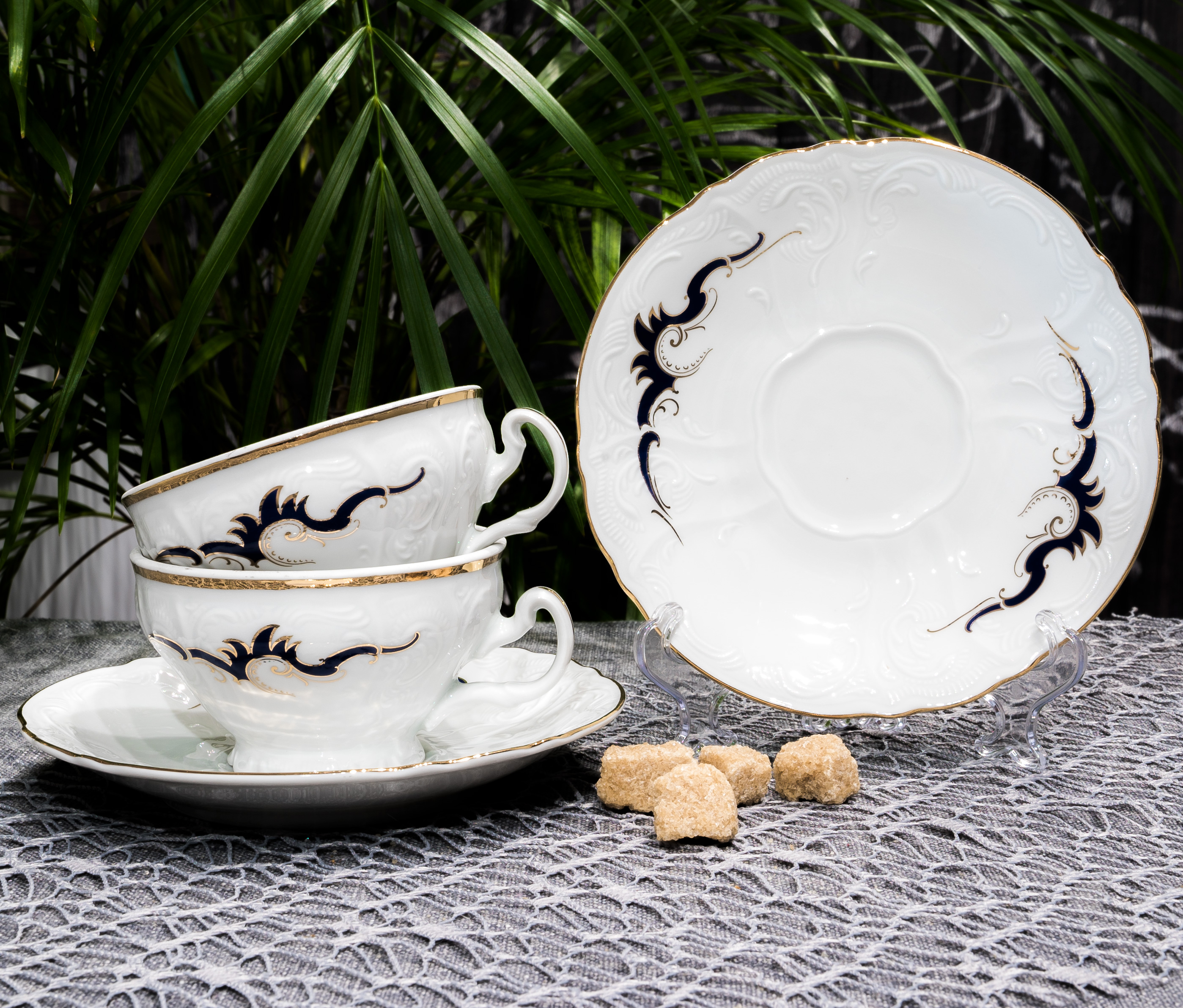 Набор чайных пар на 2 персоны 205 мл низкая, Bernadotte, синие вензеля
