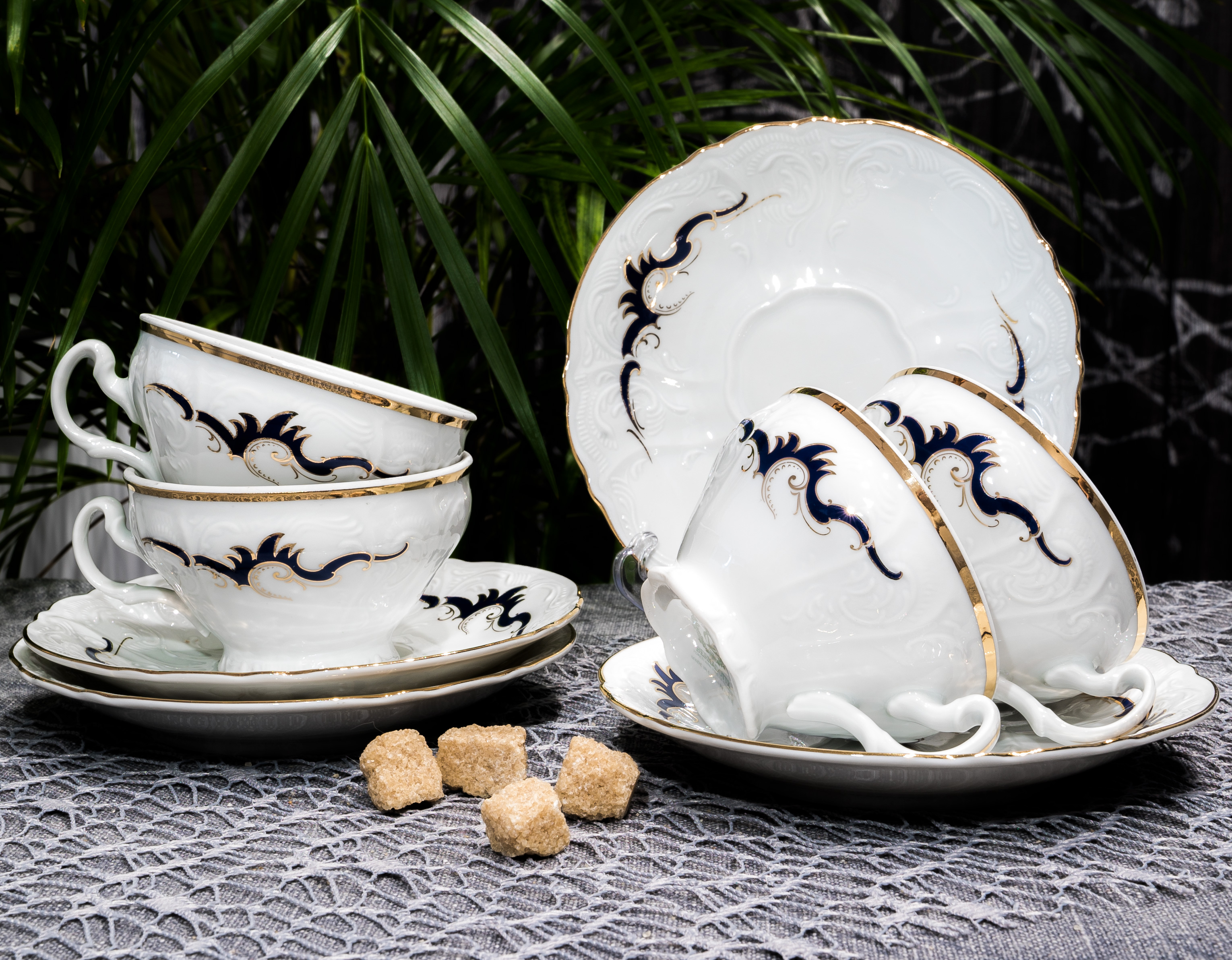 Набор чайных пар на 4 персоны 205 мл низкая, Bernadotte, синие вензеля