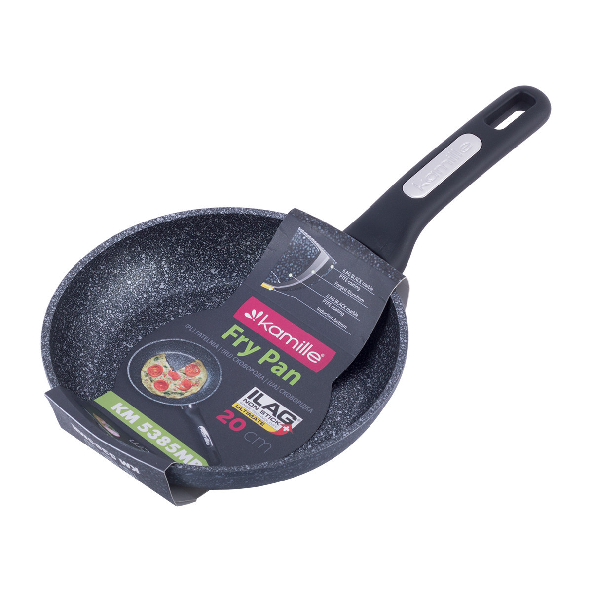 Сковорода Kamille 20см с антипригарным покрытием черный мрамор из алюминия