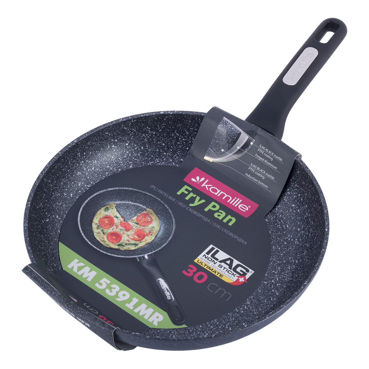 Сковорода Kamille 30см с антипригарным покрытием черный мрамор из алюминия